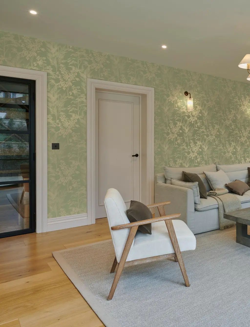 Mystic Willow, tapet med metallisk skog på lys grønn bunn