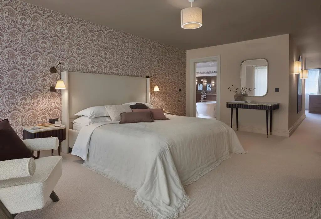Paisley Linen, tapet med paisleymønster i natur/rosalilla toner