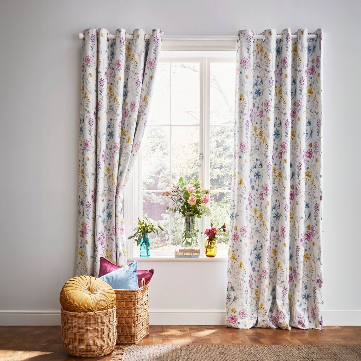 Wild Meadow, ferdigsydde lystette gardiner med blomster i friske farger