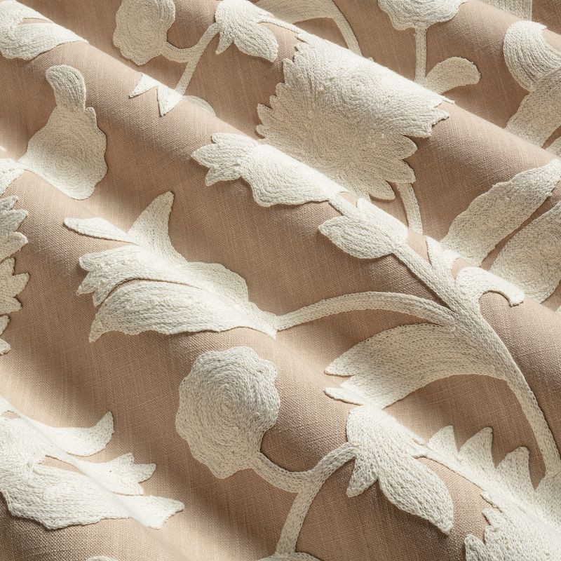 Florence, delikat tekstil med broderte blomster i offwhite på naturlin