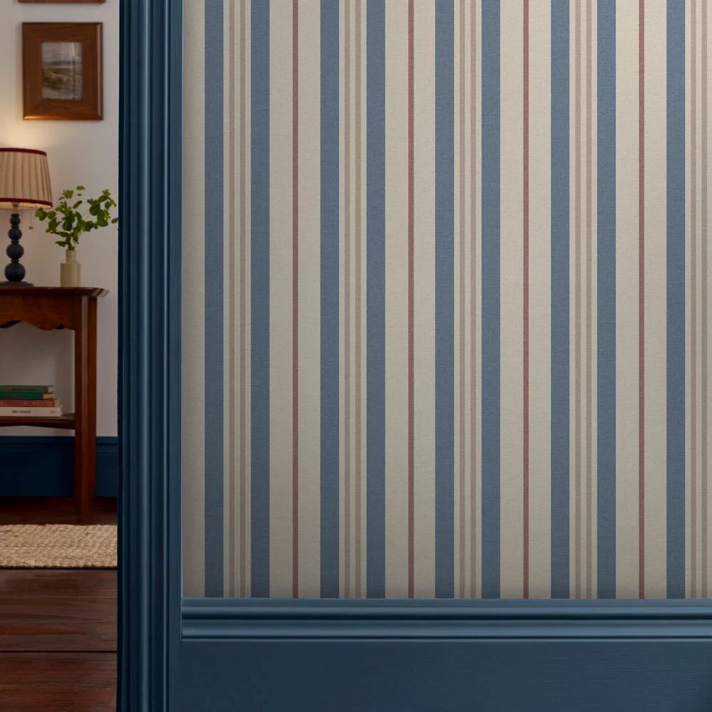 Grove Stripe, stripete tapet i støvet blått og rosa