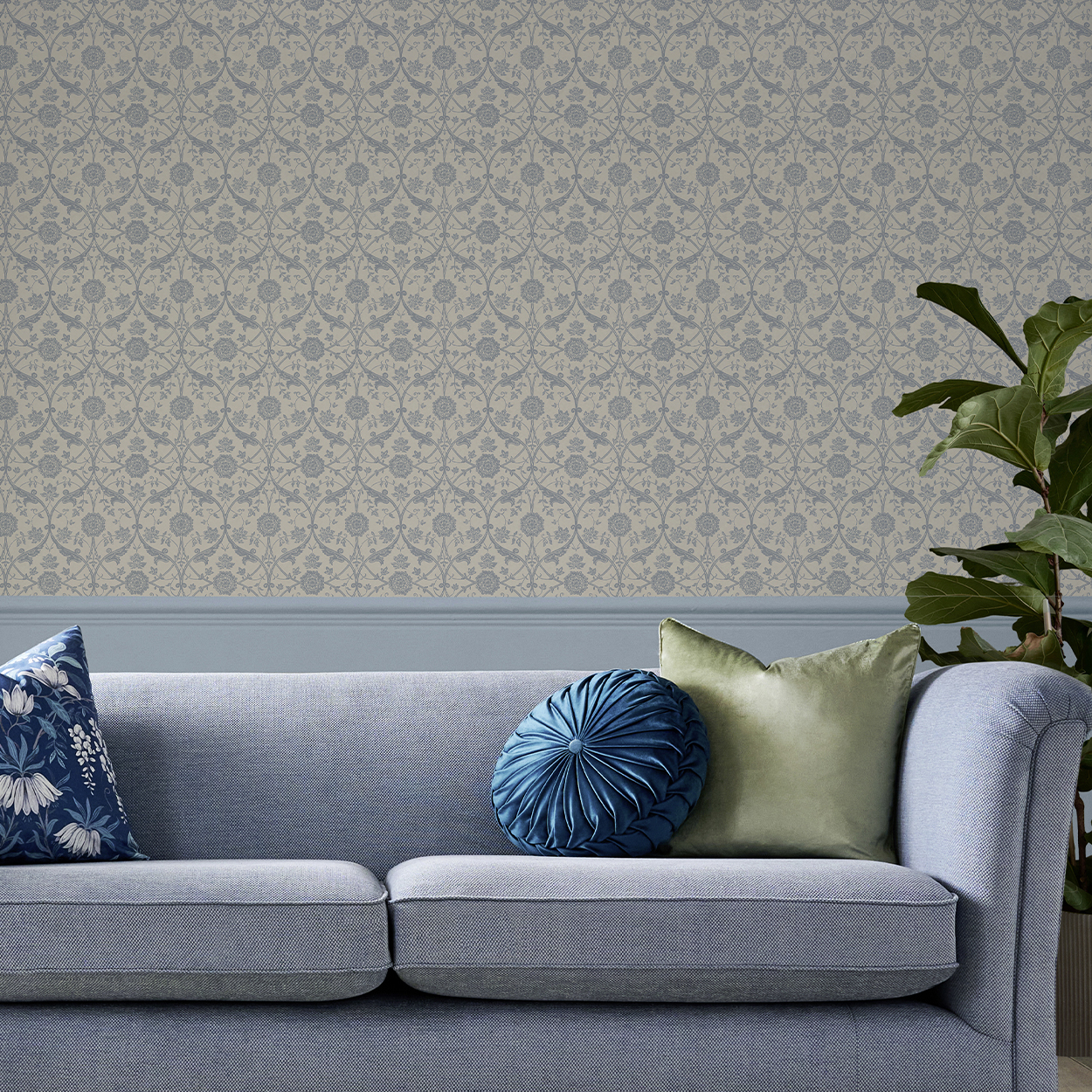 Endale Trellis, elegant damaskmønstret tapet i blått