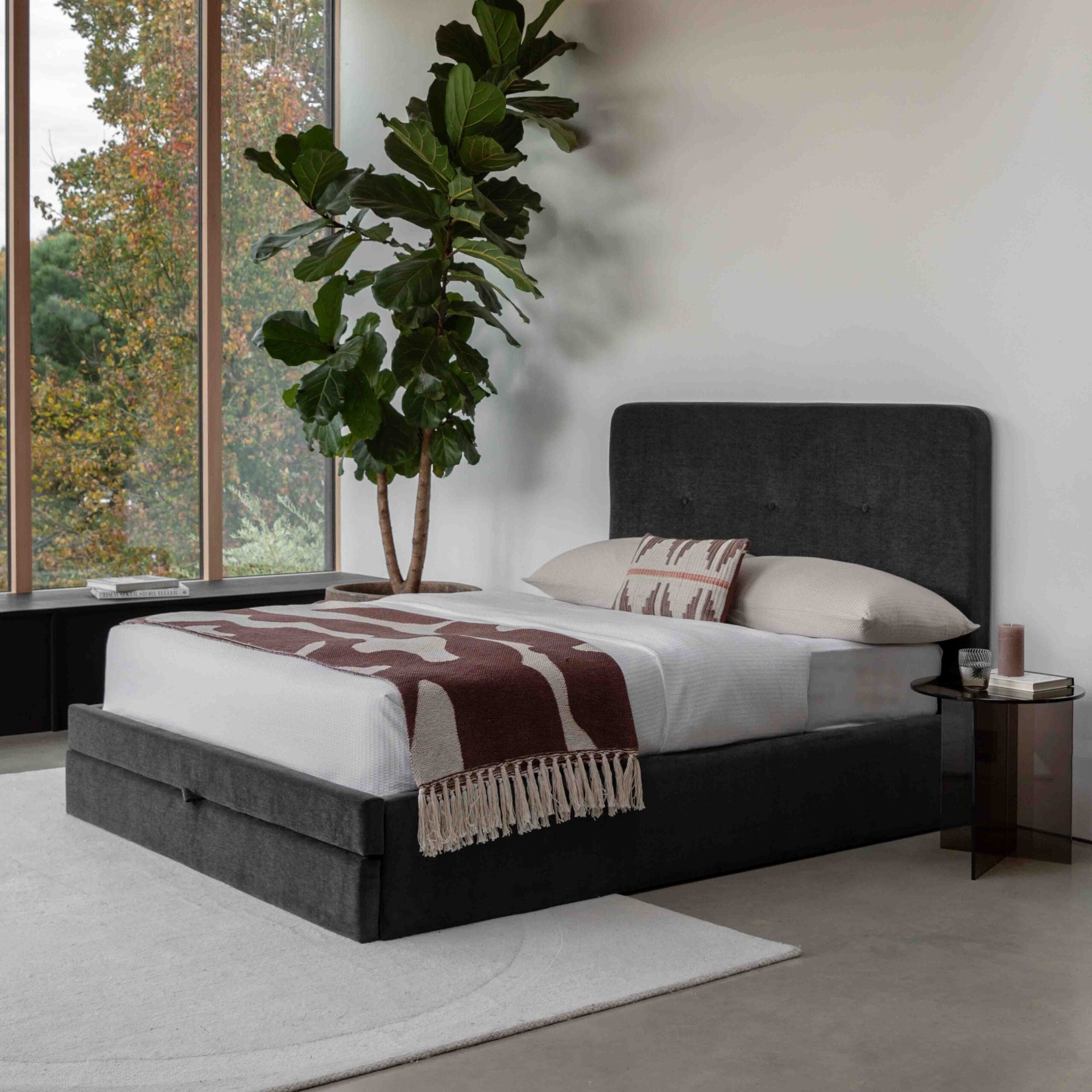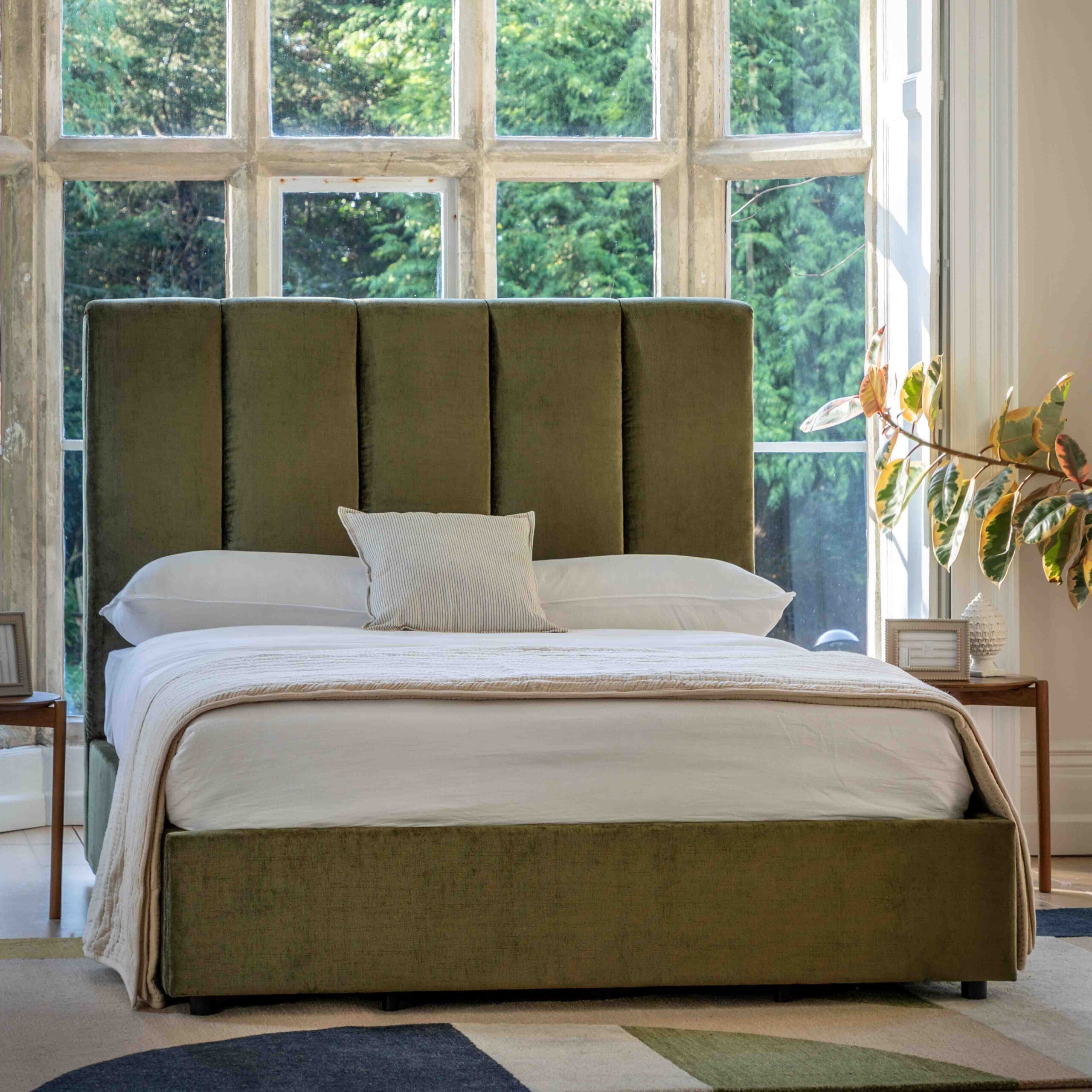 Denton, trukket sengeramme i fløyel, med hodegavl (MTO 20 Stoffvalg)