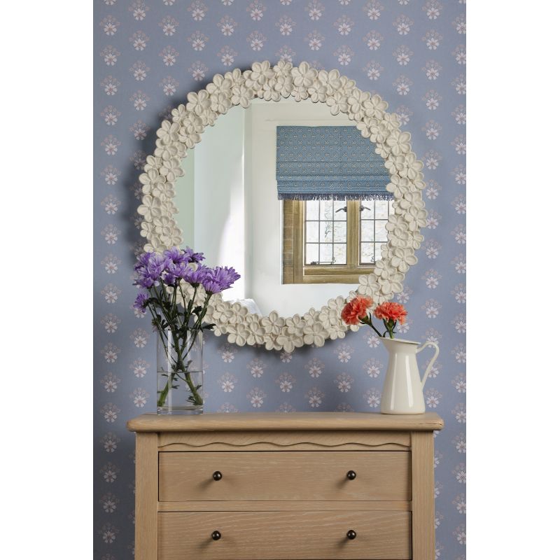 Romsey, rundt speil med ramme av blomster i mat hvitt