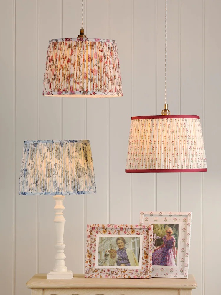 Adwick Trail, plissert lampeskjerm med blomstermønster i blått fra Laura Ashley