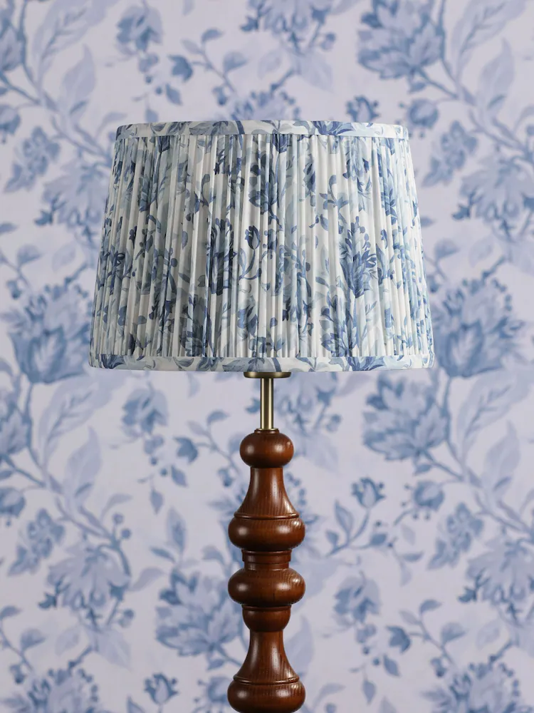 Adwick Trail, plissert lampeskjerm med blomstermønster i blått