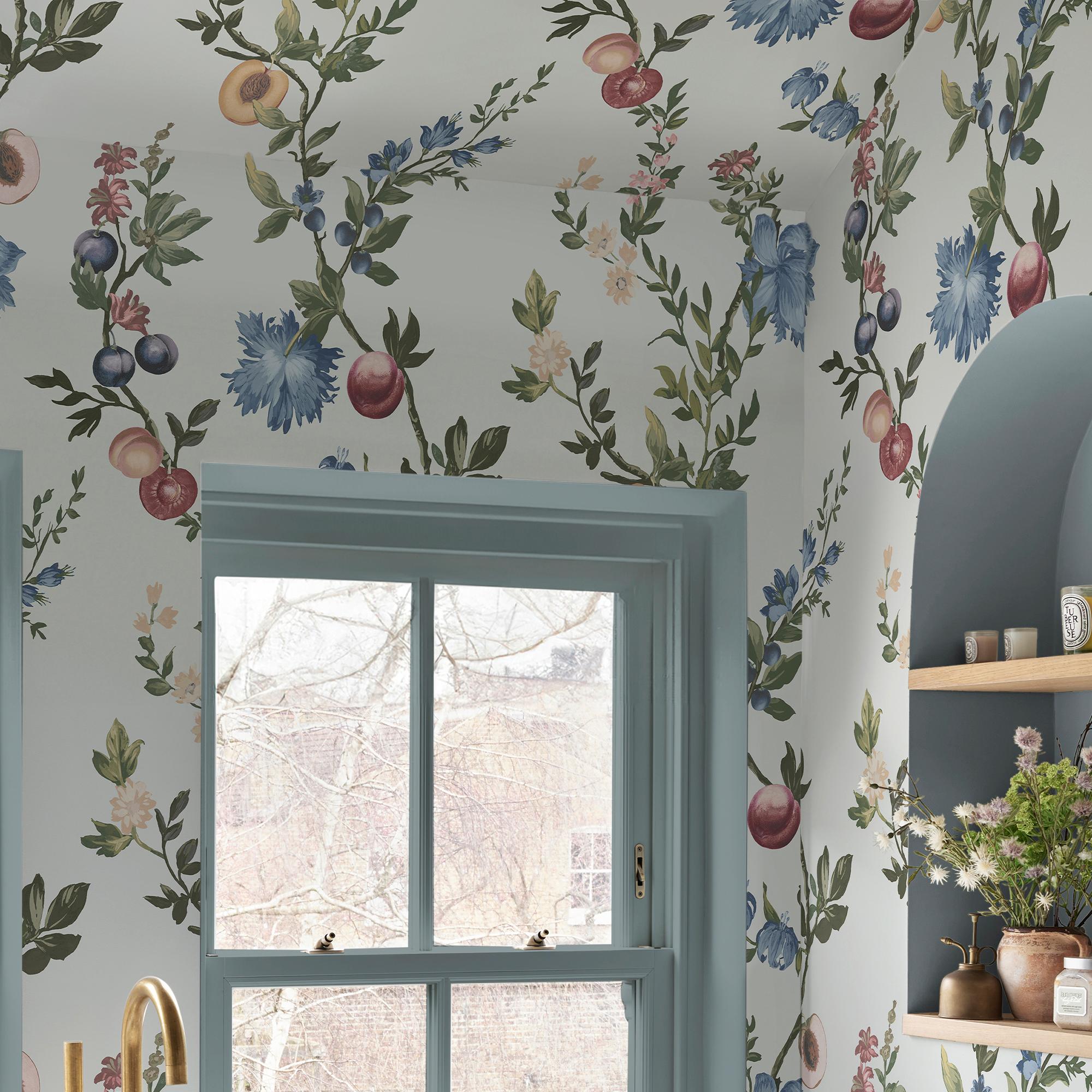 The bright white backdrop brings clarity to the intricate brushwork, letting each stem and blossom sing. Perfect for uplifting kitchens, sunrooms or airy bedrooms, this wallpaper brings the outside in with freshness, simplicity, and painterly charm.