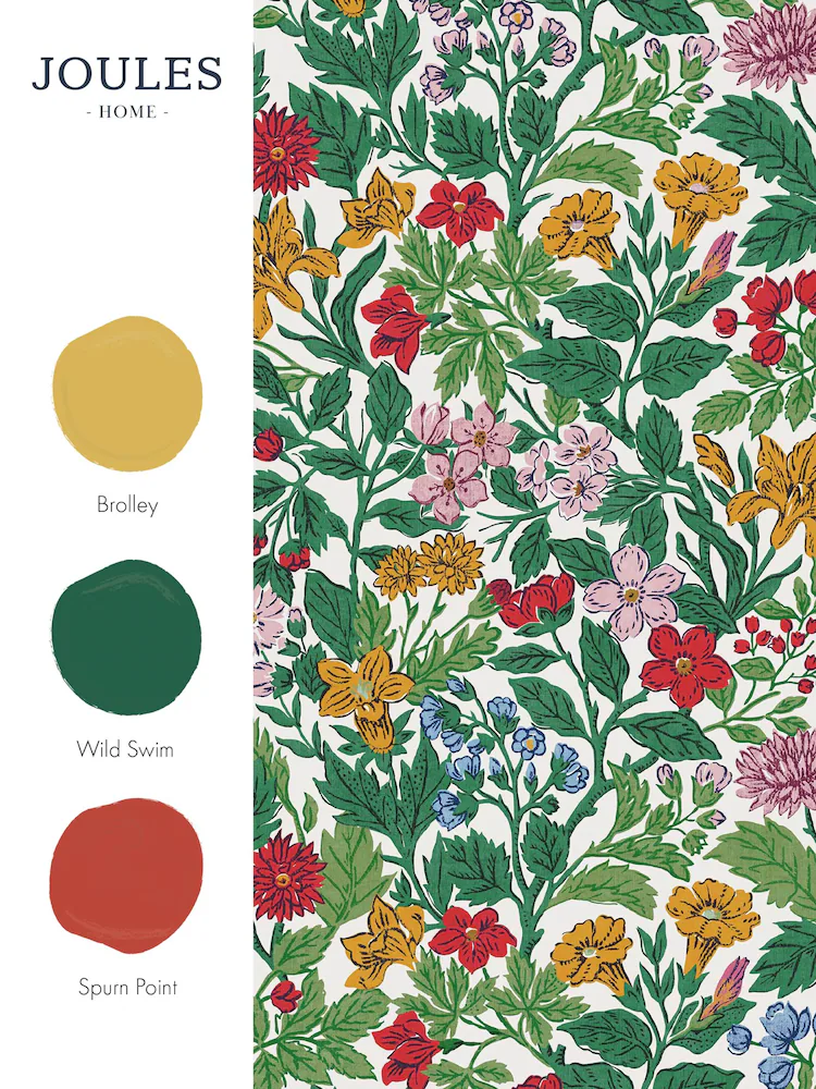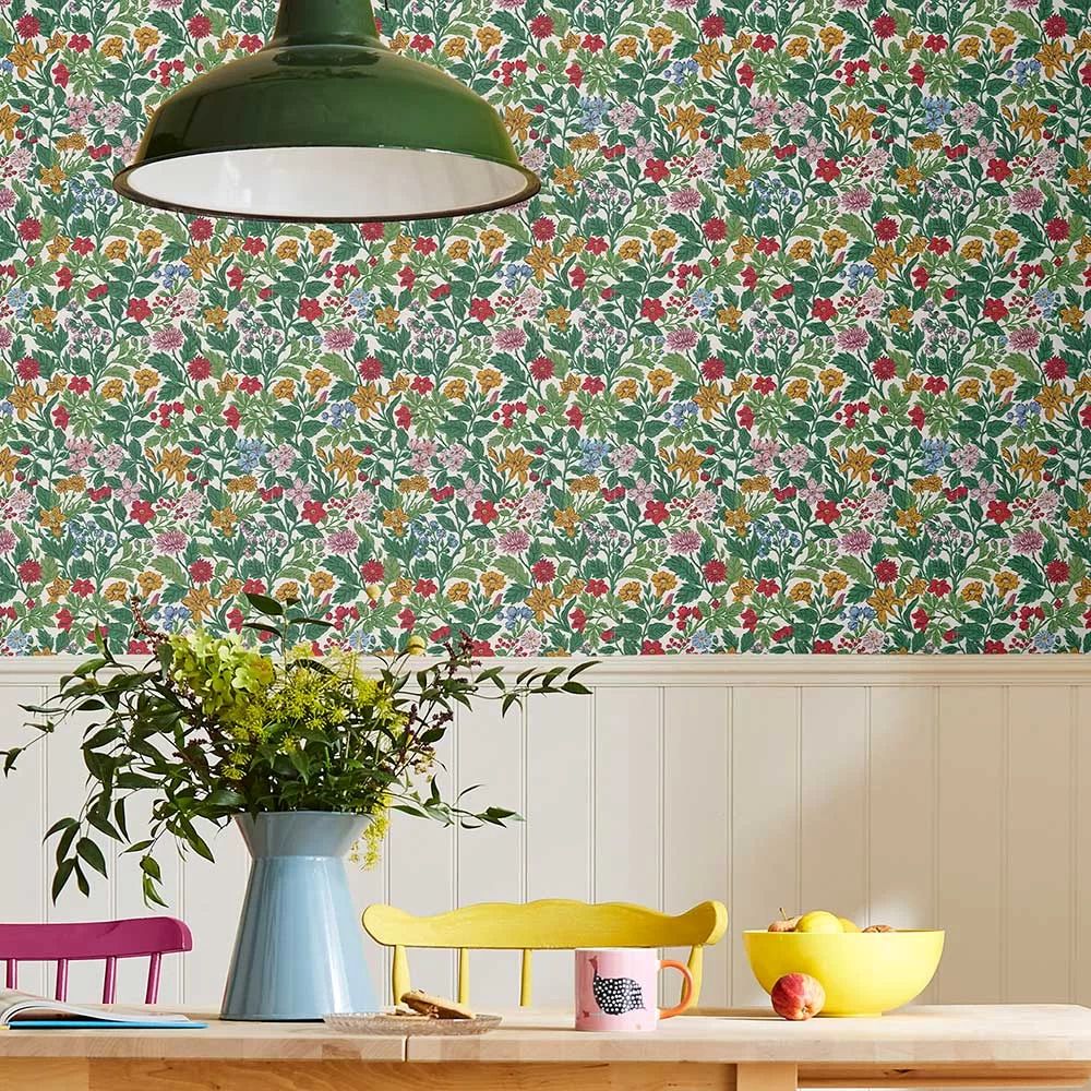 Arts and Crafts Floral Rainbow, blomstrete tapet i regnbuens farger fra Joules
