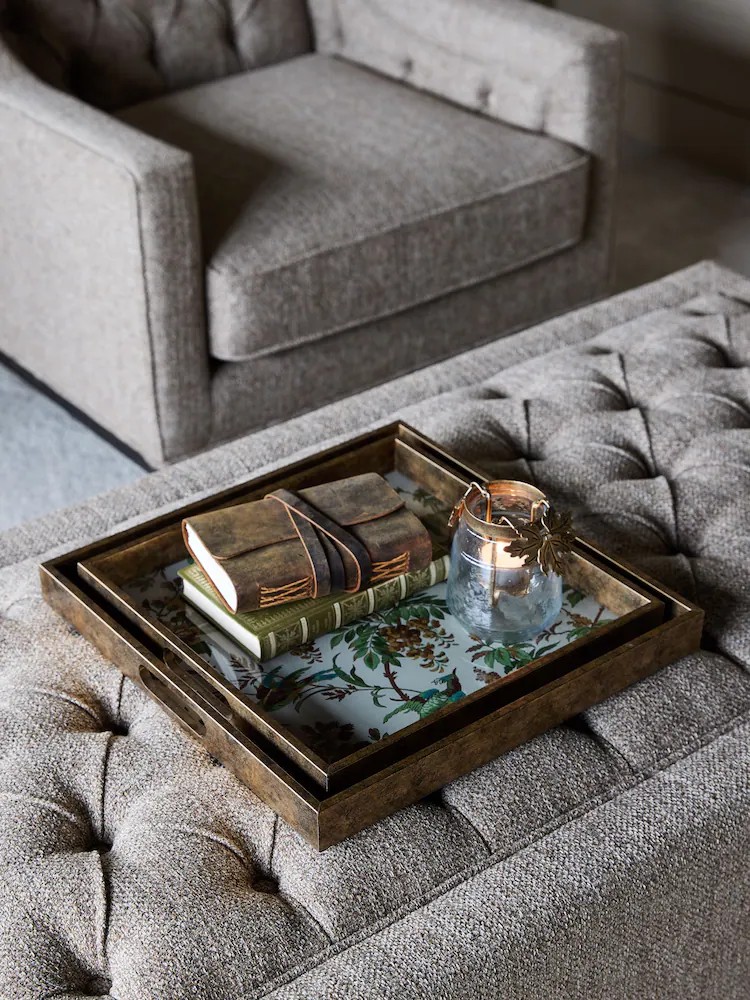Elevate your home with this set of 2 Laura Ashley trays featuring the beautiful Attleton print. Undeniably elegant, Attleton is a gorgeous design featuring exotic birds amongst foliage and delicate florals. Held in the Laura Ashley archive, this charming and romantic design is perfect for interiors that exude elegance and evokes the beauty of nature with a timeless, sophisticated charm. The antique gold edging adds a soft, luxurious warmth, making these trays ideal for both serving and display.