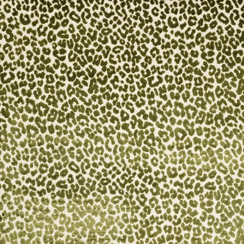 Bagheera, spennende leopardmønstrete damaskvevd fløyel, spottene her i grønn fløyel. Et møbel og gardinstoff som skaper en moderne dyrisk stemning i hjemmet. Martindale: 60 000