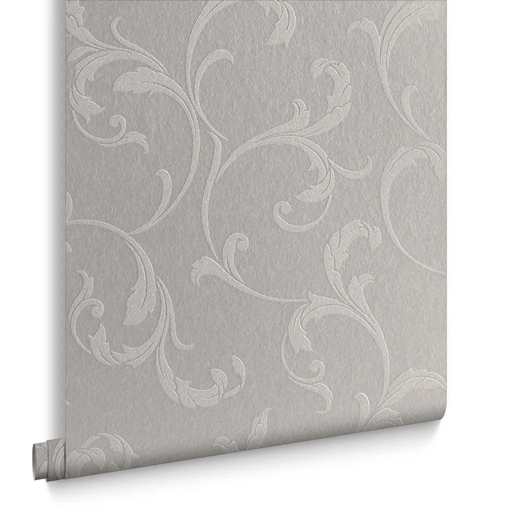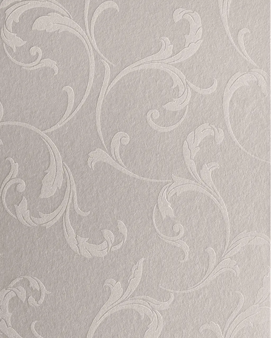 Baroque, en luksuriøs og tidløs tapet med perlet mønster av arabesk som flyter over veggen, den lekre tonale tonen i sølvgrått, med skinnet fra perlene gir den et elegant og luksuriøst preg.