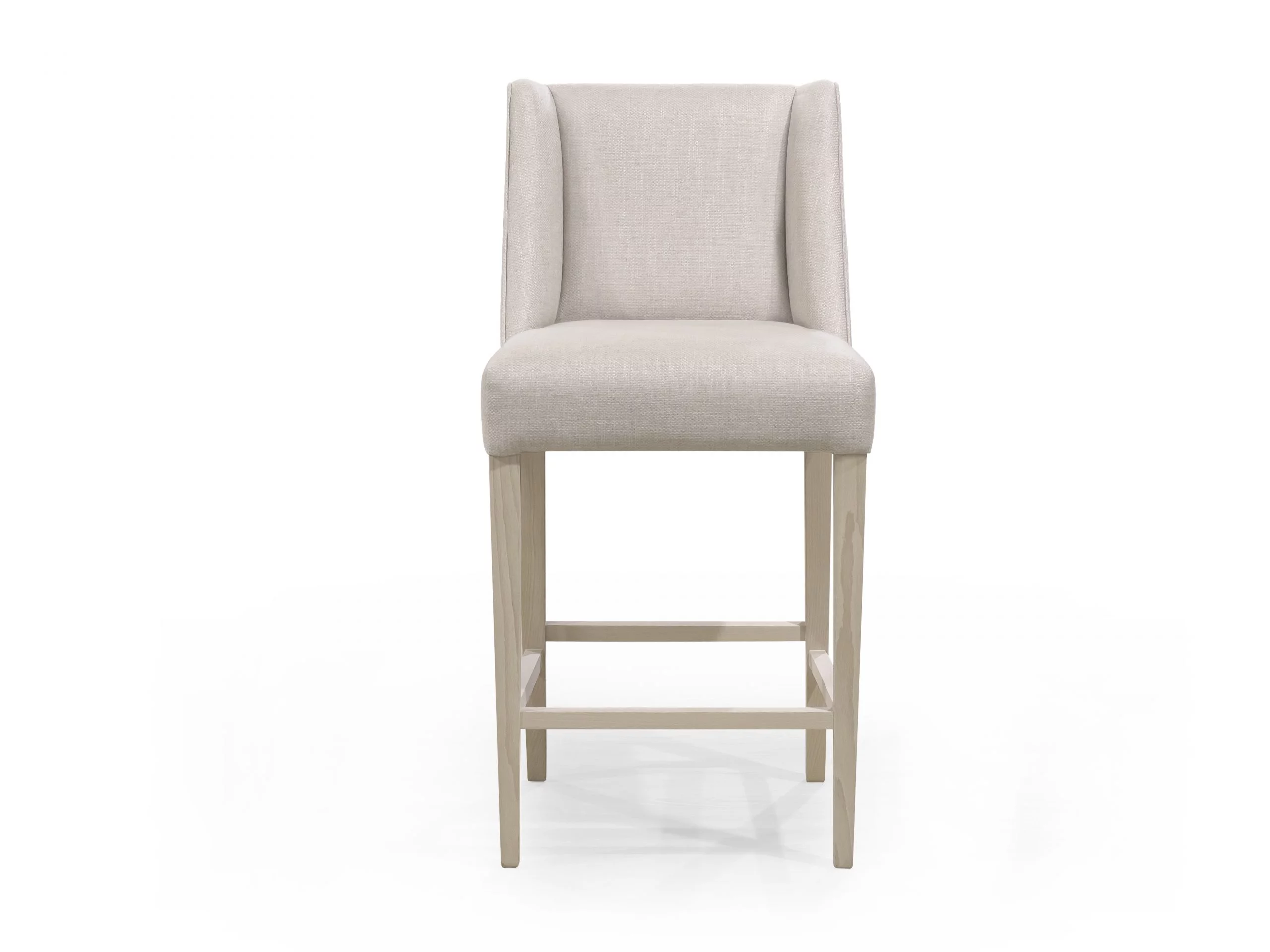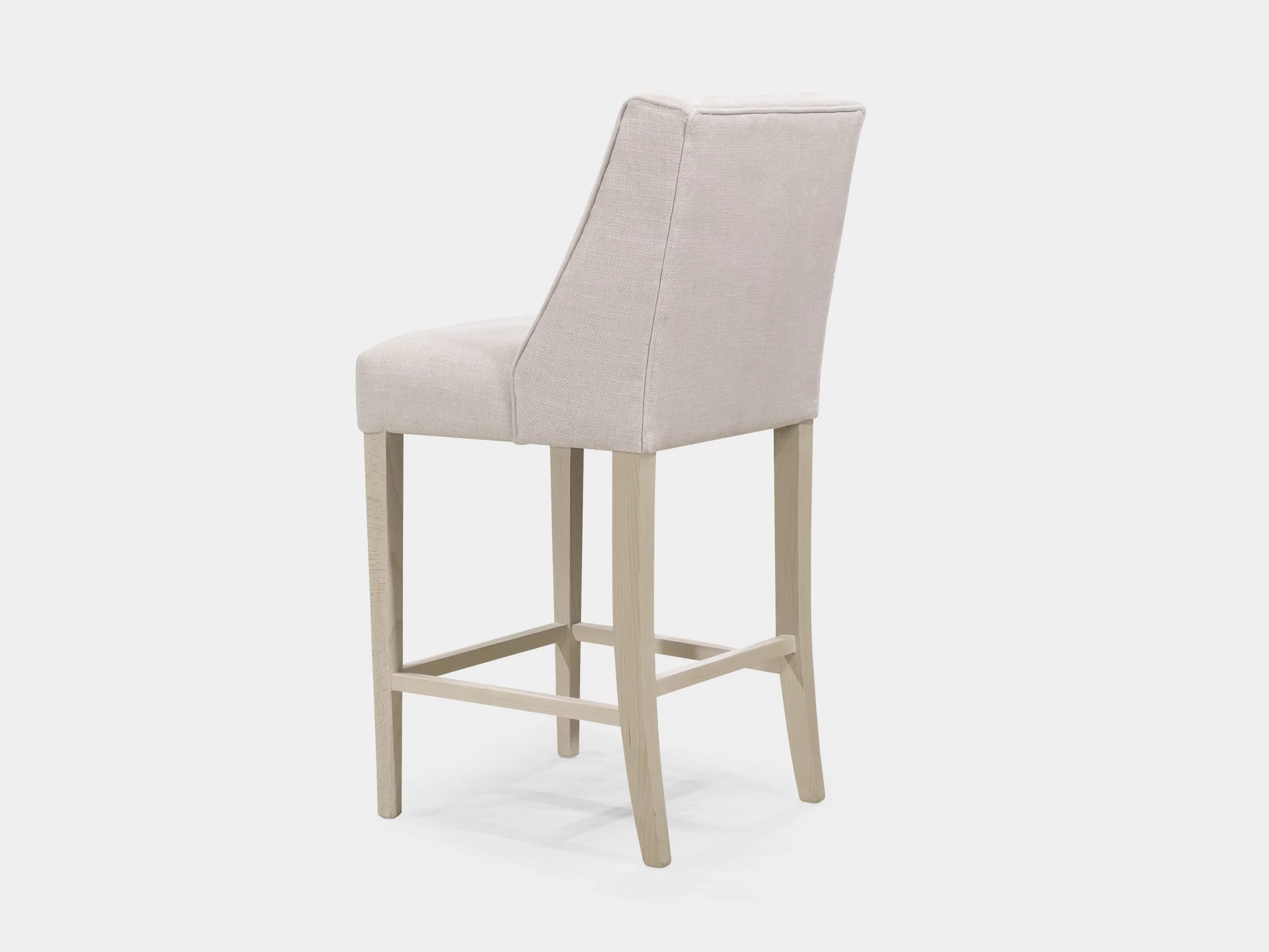 Beas, en elegant og tidløs barstol med buet rygg. Her velger du selv hvilket møbelstoff, mål og benfarge du ønsker. Beas produseres på bestilling i Spania.