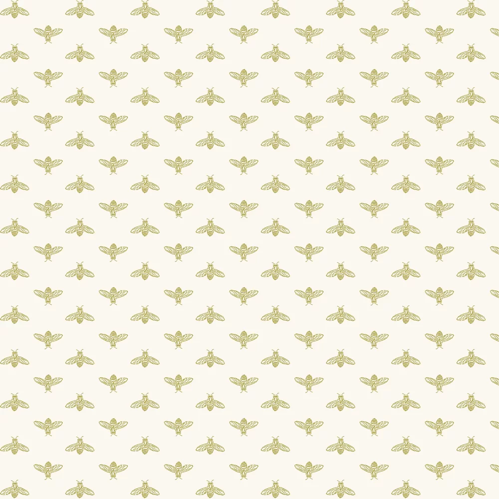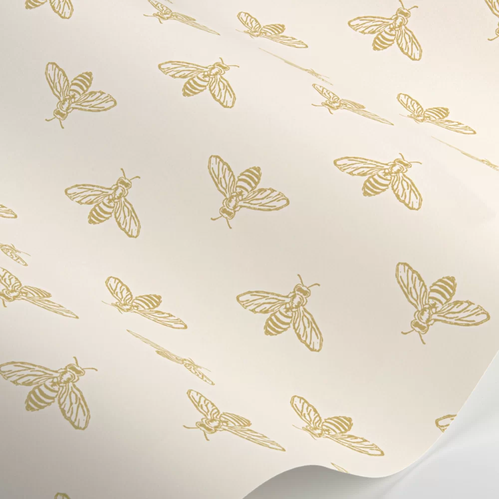 Add a little countryside charm to your home with this block print bee wallpaper. Created in a stunning antique gold colour palette, the block print bee sits perfectly upon a soft white background giving it a sun-filled and fresh feel.