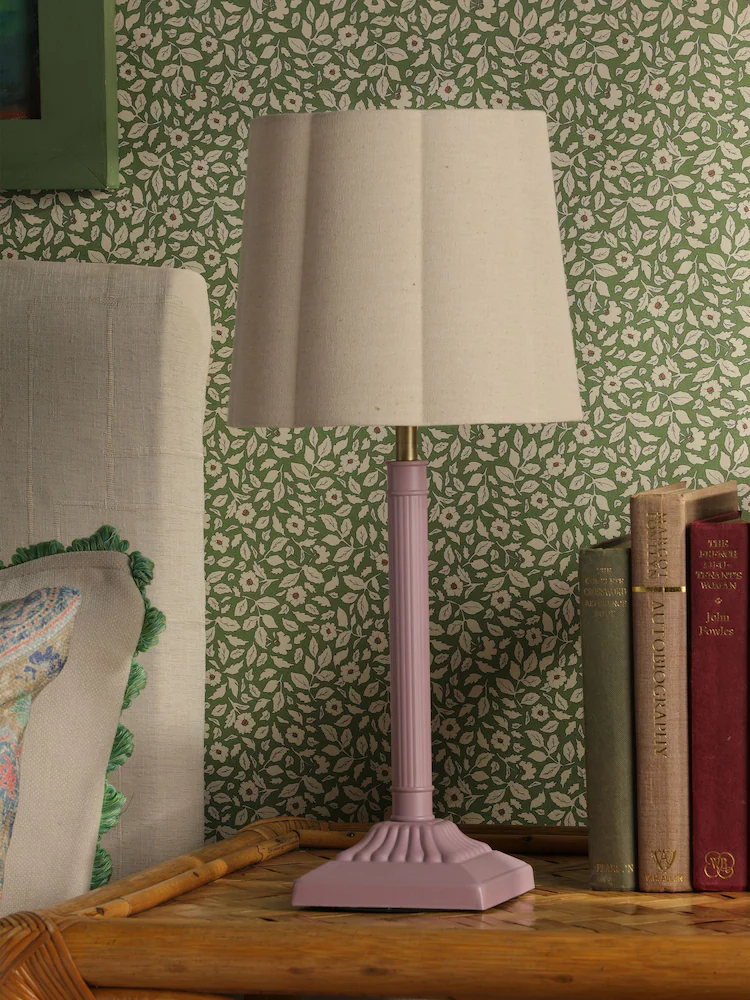 From bedside to bookcase, the Buscot table lamp will enhance any space in your home. Combining timeless style and functionality, it’s a piece that will look just as good in years to come as it does today. A decorated long column stand and square base with a pink matte painted finish creates stand-out appeal. The neutral coloured linen lamp shade is scalloped for a nod to the art deco era and creates a cosy glow against the wall. Just add an early night and the latest romance bestseller.