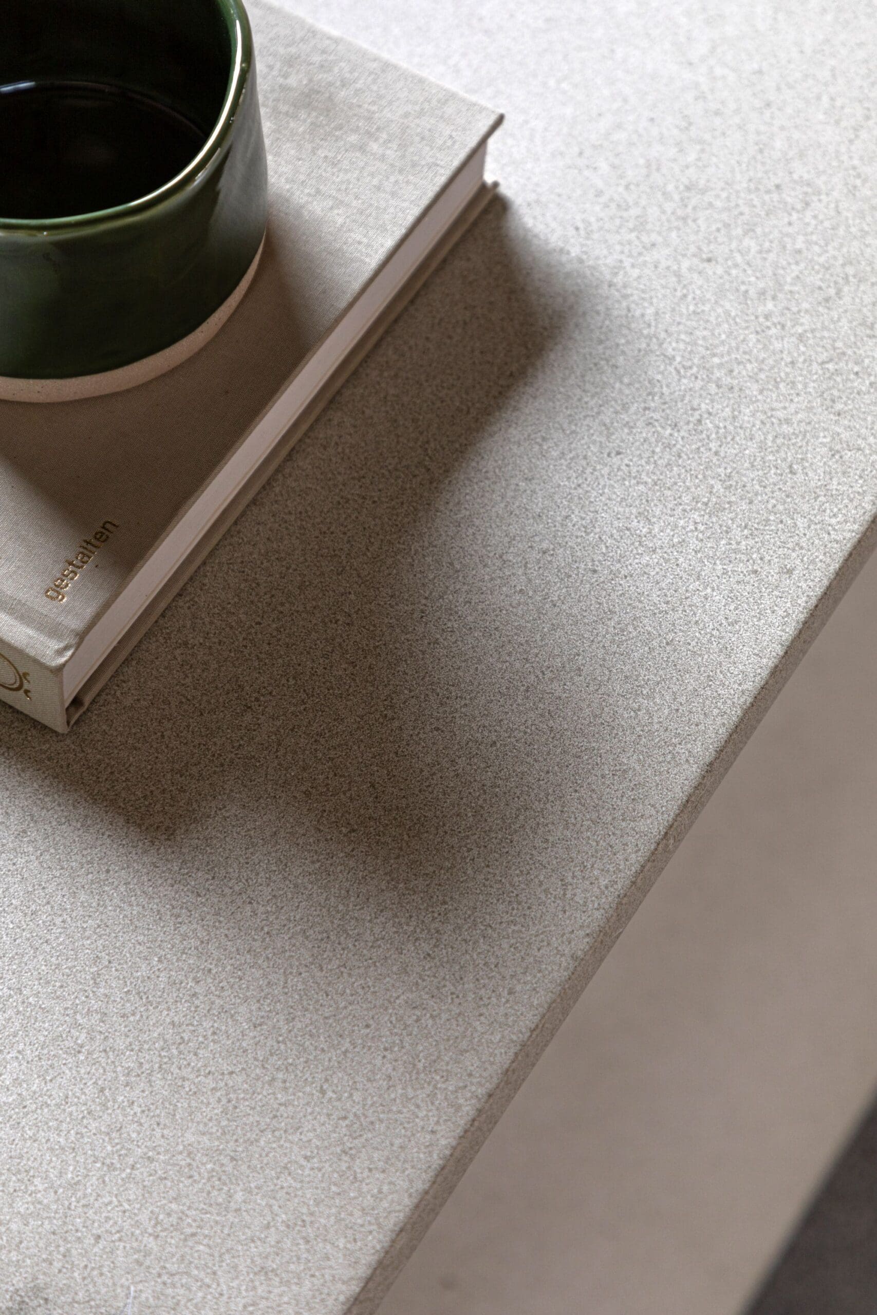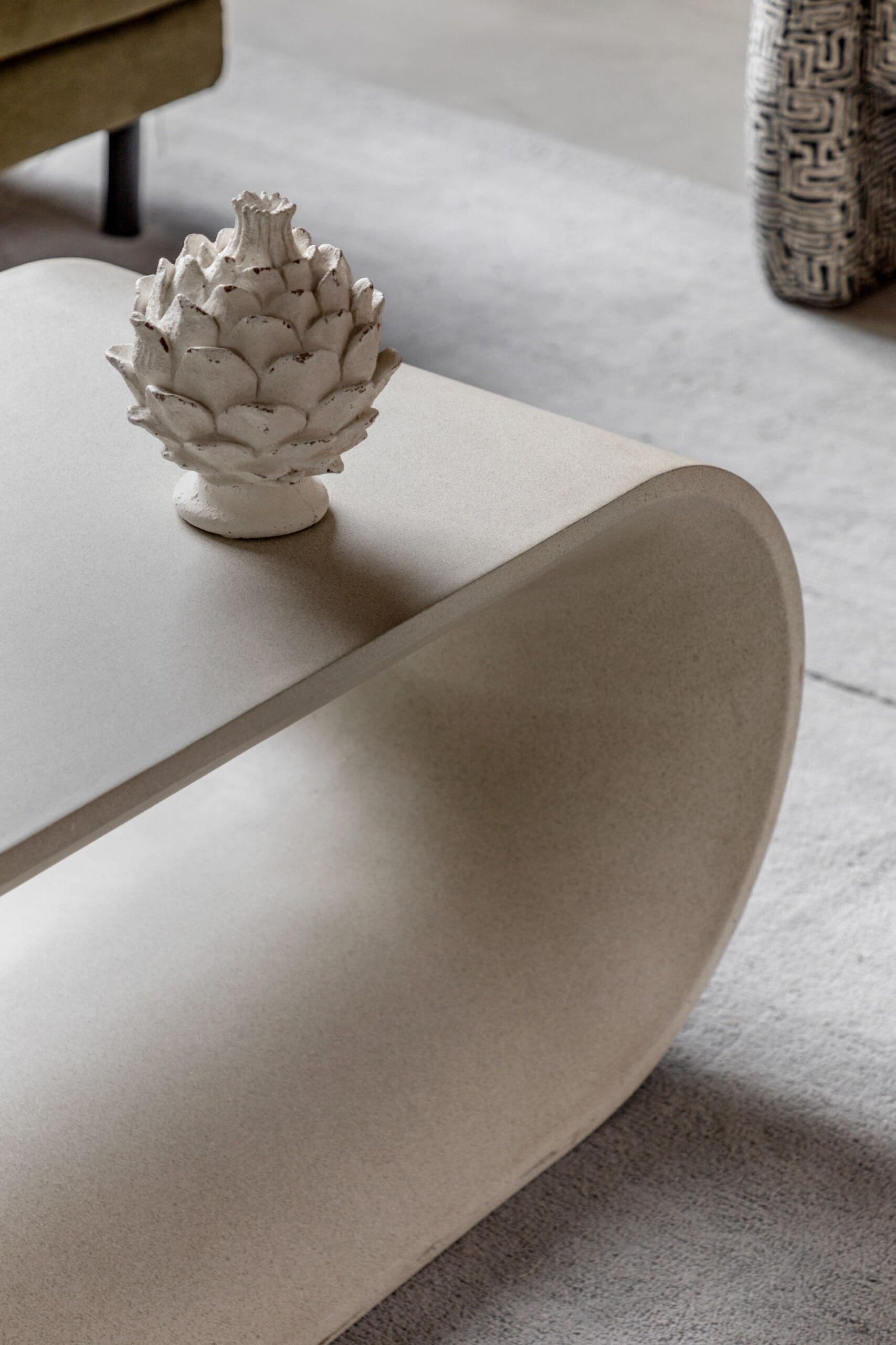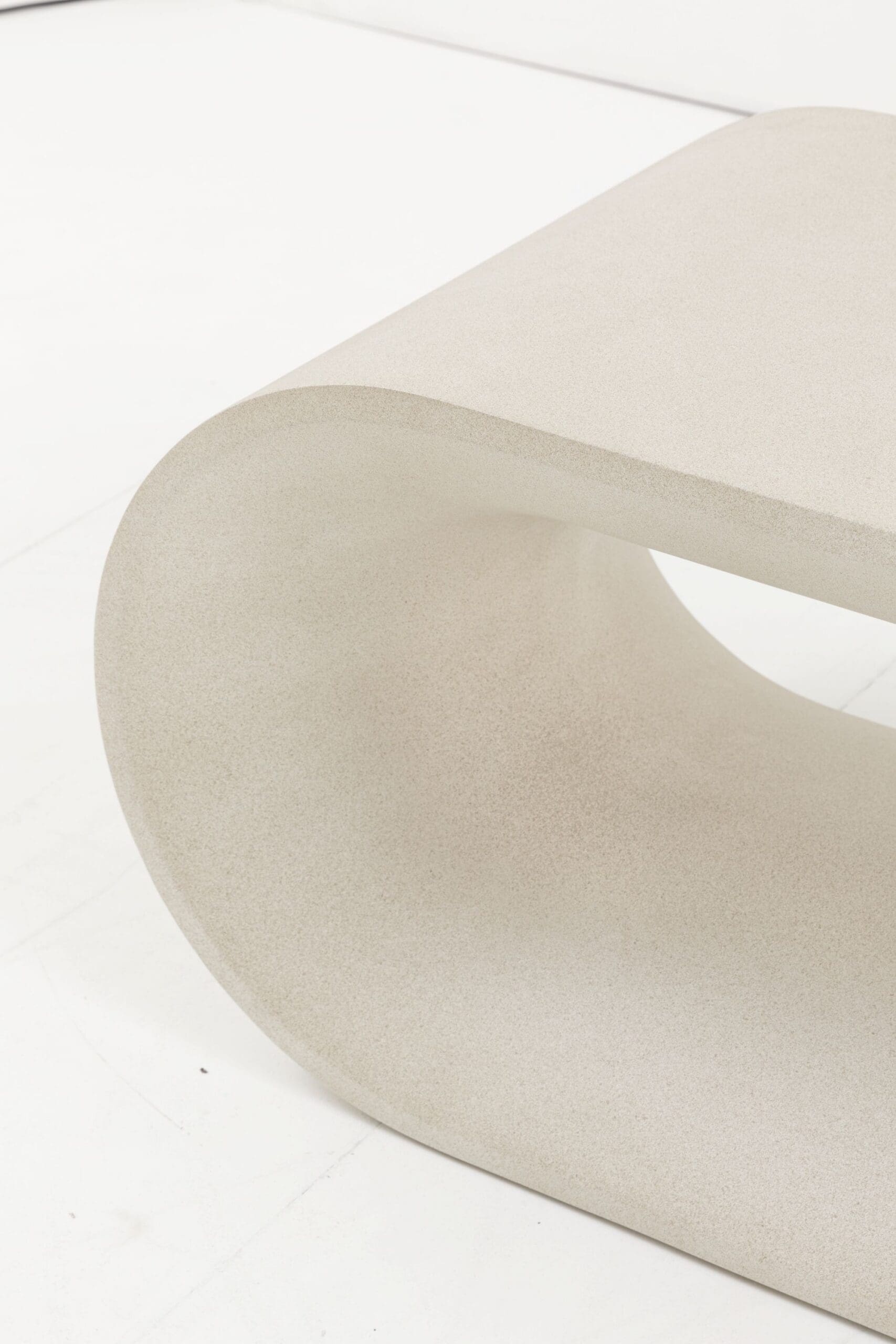 Caluso, skulpturelt salongbord i naturfarget glassfiberbetong