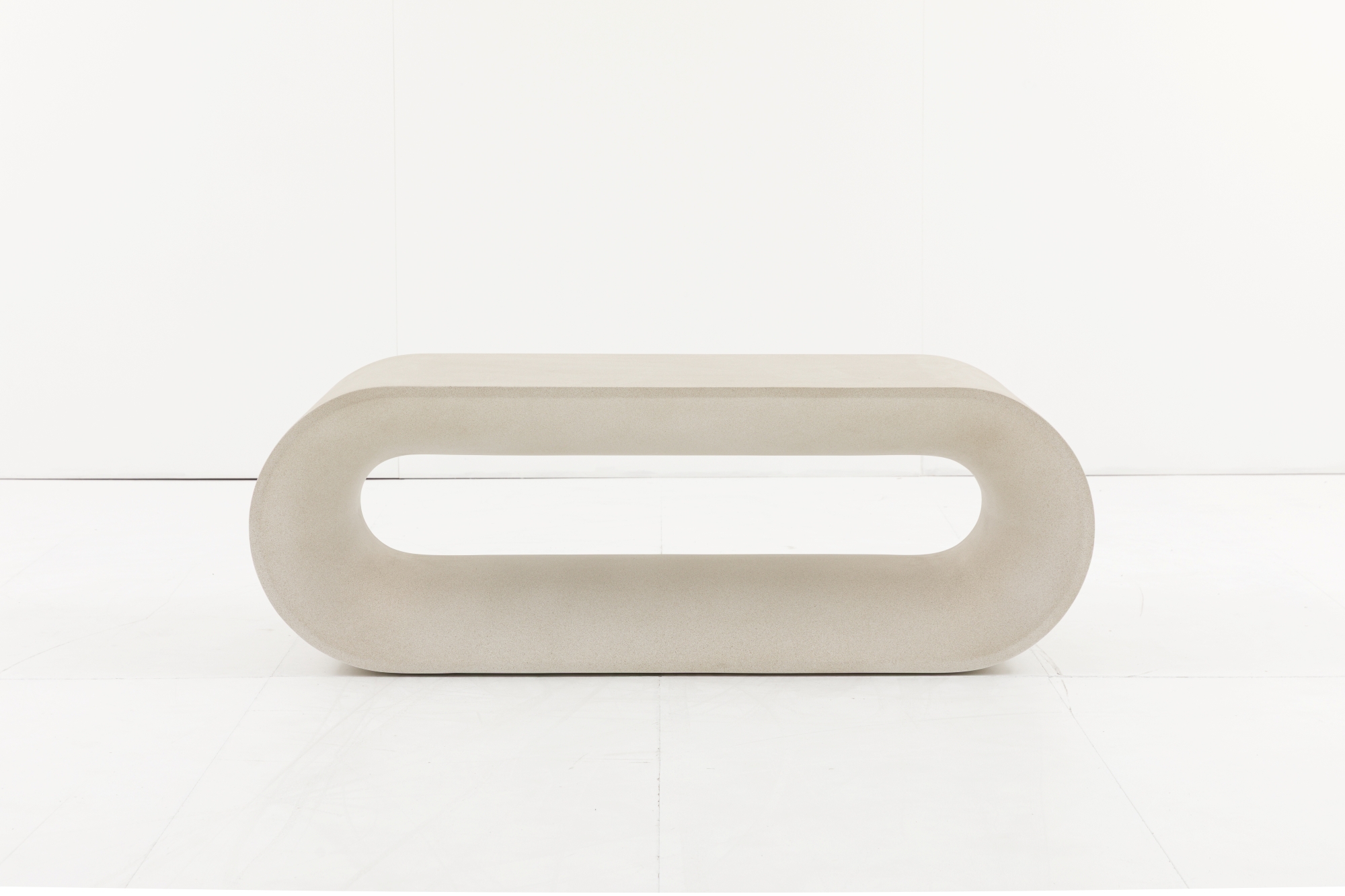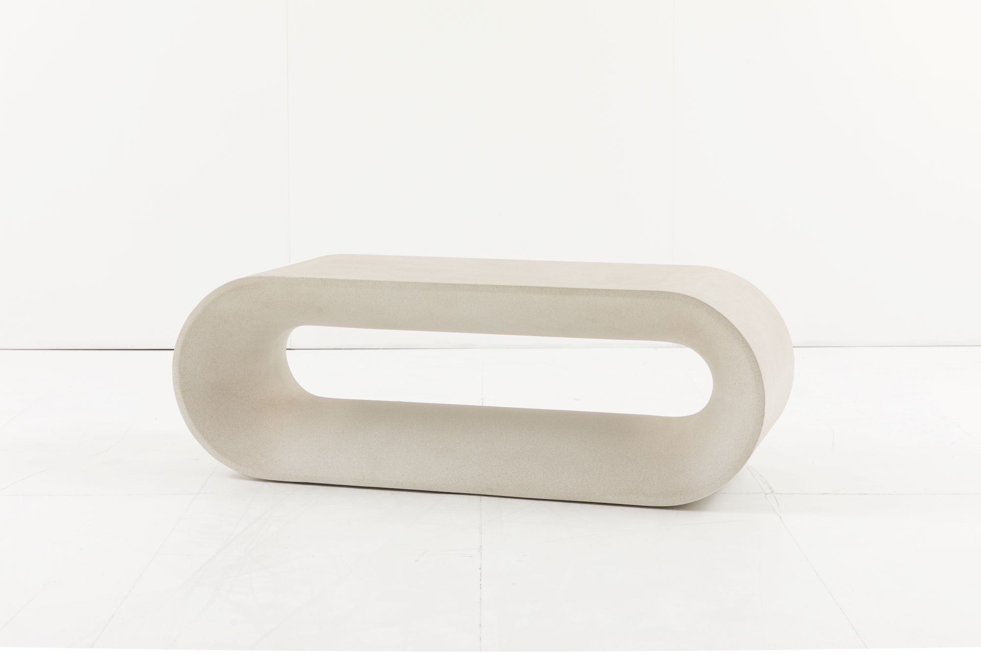 Striking and sculptural, this coffee table is designed with a bold, modern architectural aesthetic in mind. The smooth, rounded curves and tactile surface create a distinctive, statement look. Crafted from durable reinforced glass concrete finished in a matt linen tone, this coffee table is also fantastically versatile, as it is suitable for use outdoors or indoors.