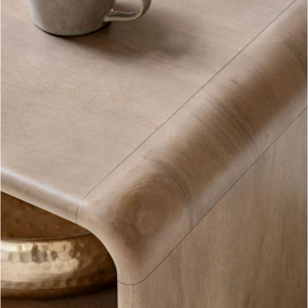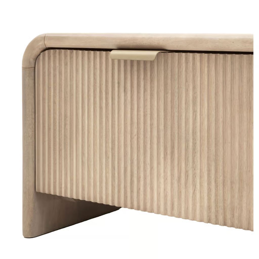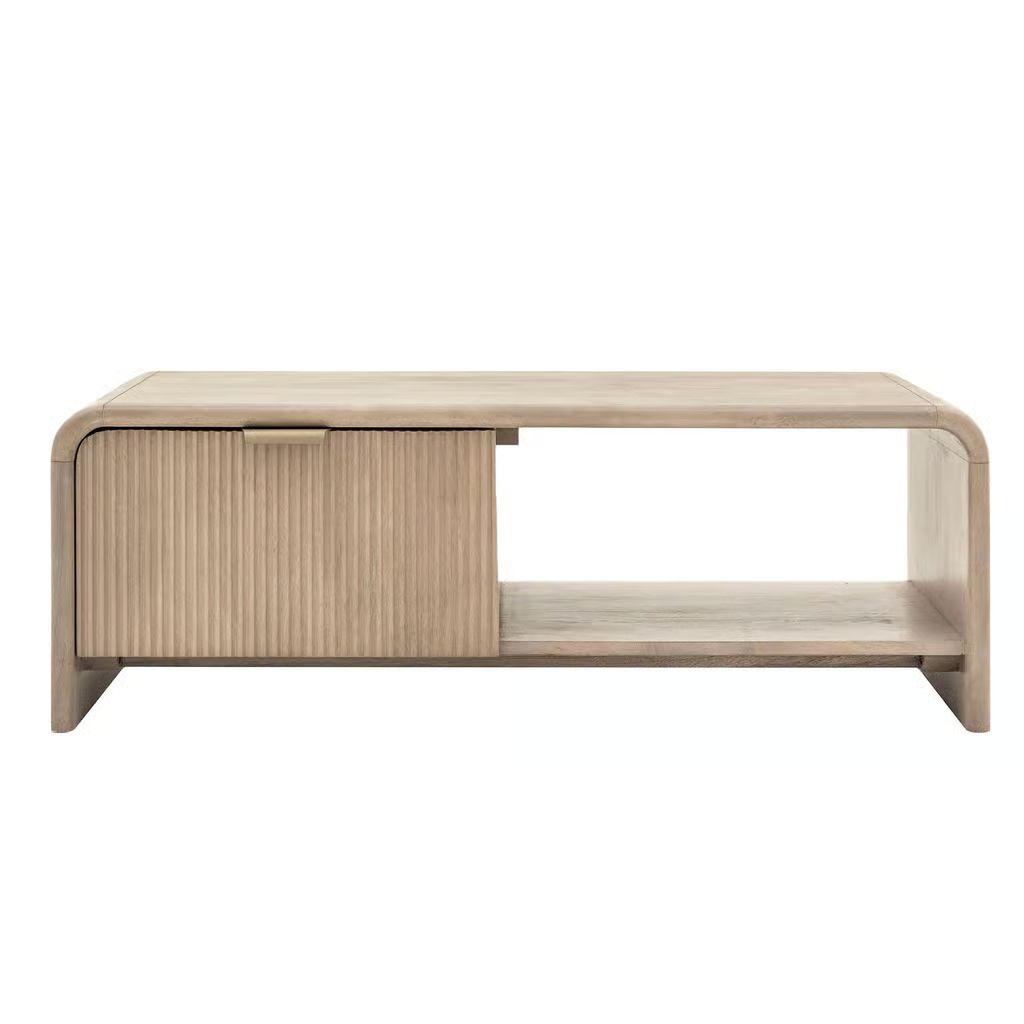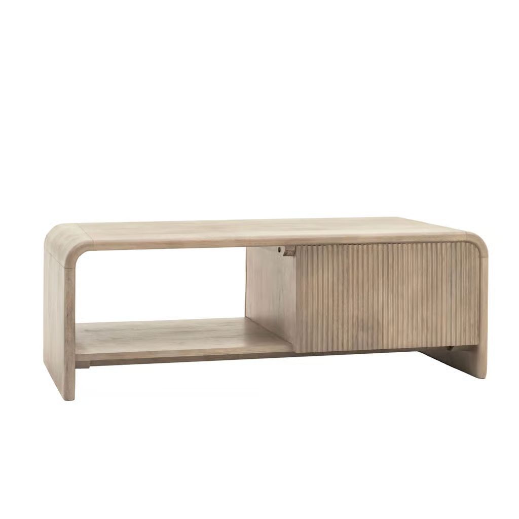 This coffee table combines elegant design with practical functionality. Featuring a sleek, curved top and fluted drawer detailing, this piece provides a stylish surface for decor while offering hidden storage for everyday essentials. The refined design makes it a versatile addition to both modern and traditional interiors, providing a perfect balance of form and utility.