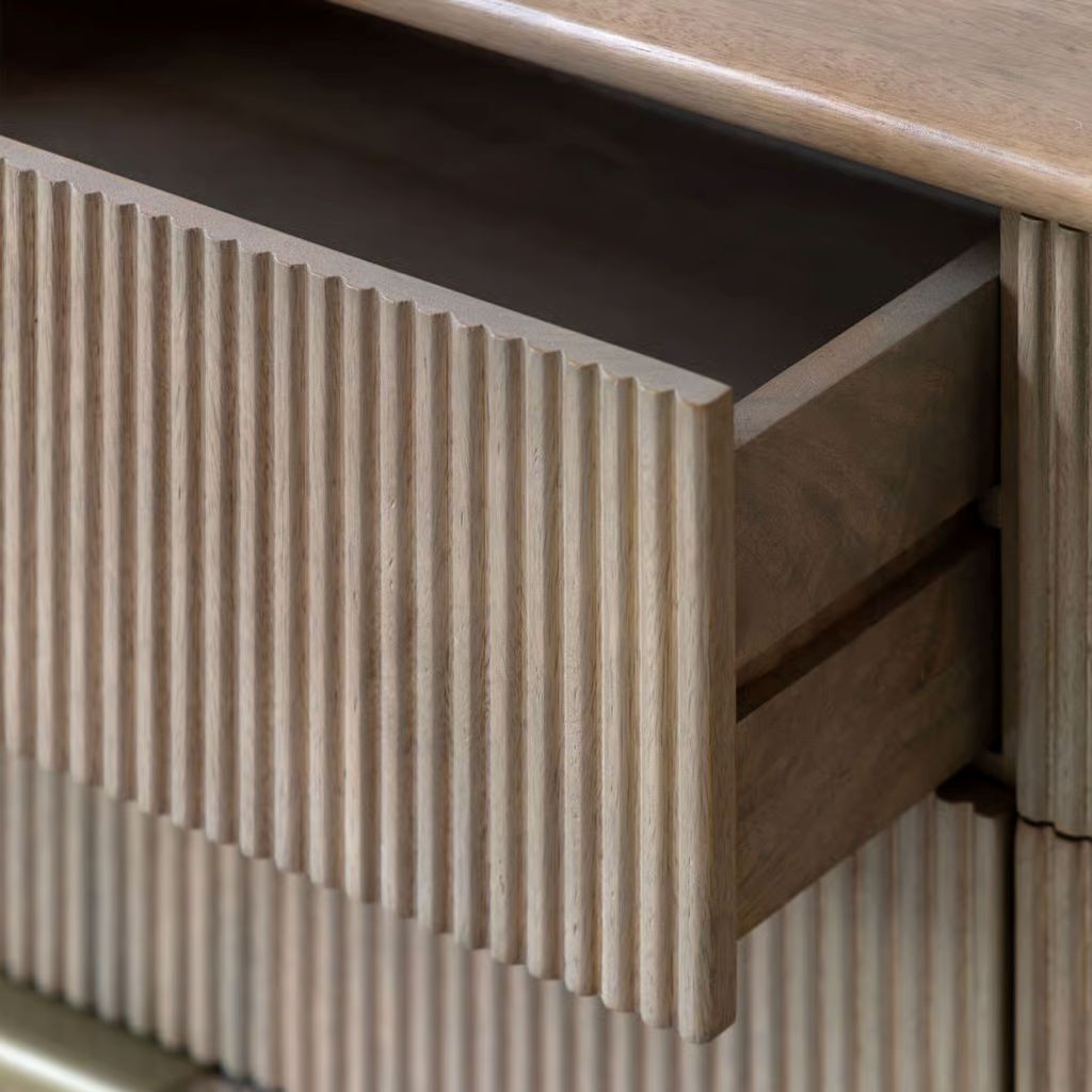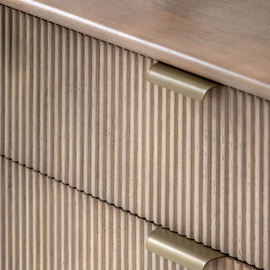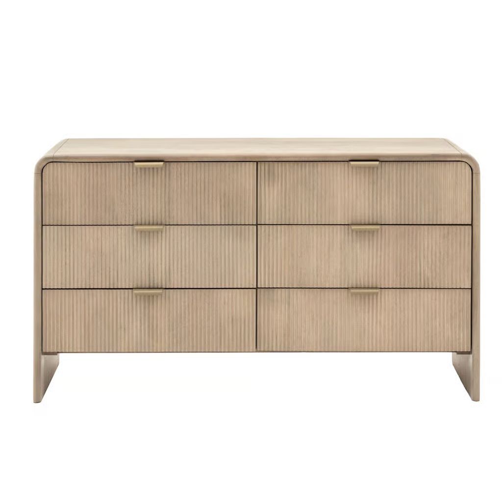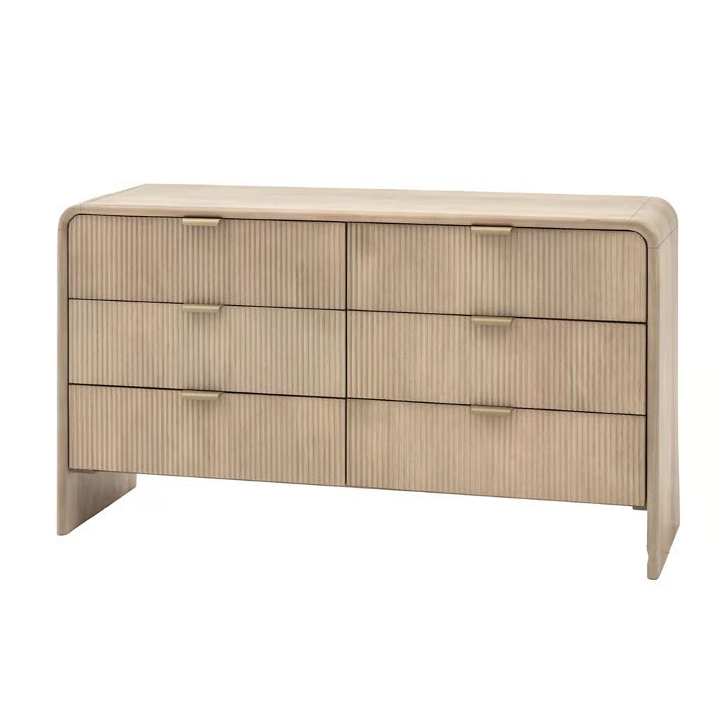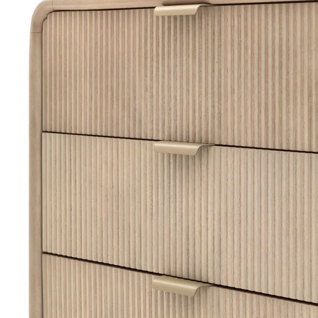 This 6 drawer chest combines sleek design with practical storage. Featuring curved tops and fluted drawers, this chest provides ample space for organizing clothing, accessories, or other essentials. Its refined aesthetic ensures it fits seamlessly into both contemporary and classic interiors, offering a functional and stylish storage solution.