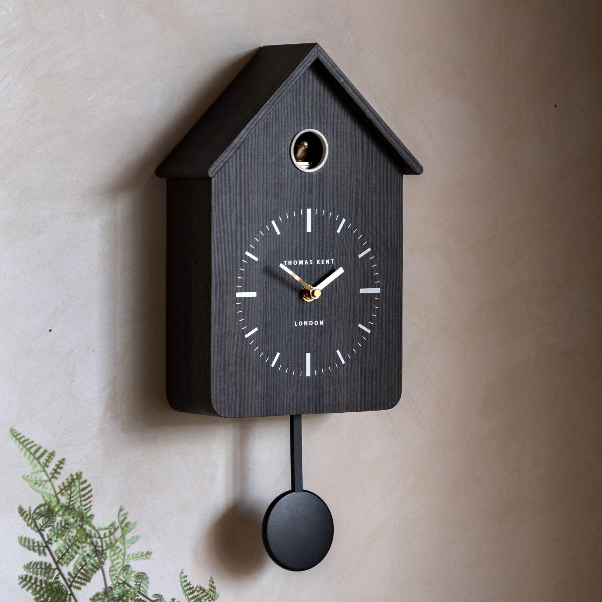 Cuckoo, veggklokke, moderne gjøkur i koksgrå trefinish