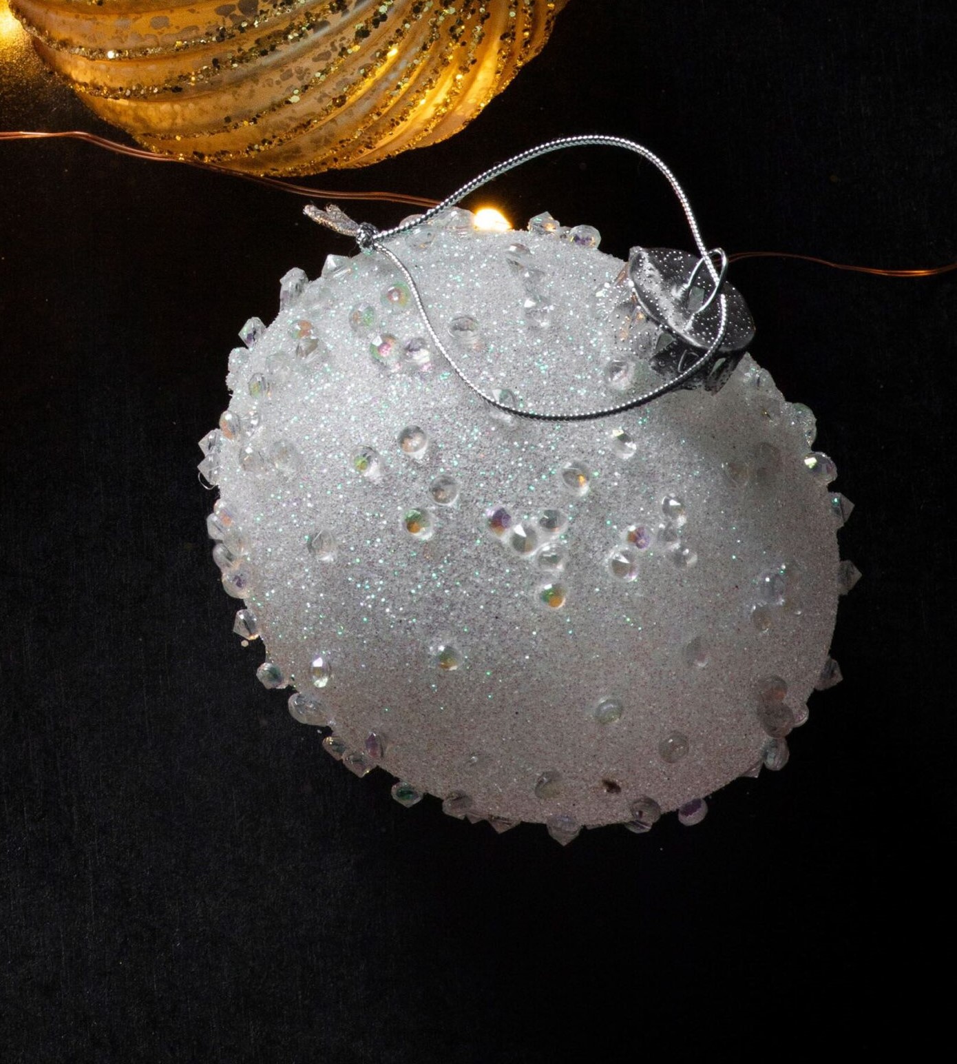 These beautiful White Opaque Beaded Onion Bauble are perfect for any Christmas tree, adding a frosty touch with the delicate beads catching the light give a bit of sparkle.
