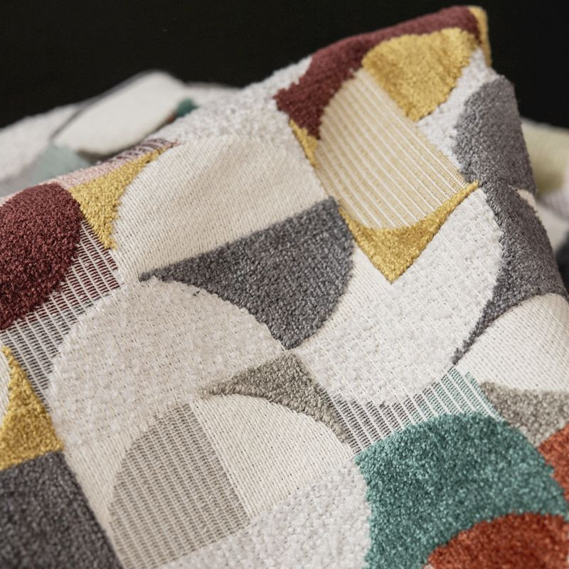Retro reminiscence to the look of sixties wallpaper, Elvis jacquard weaves psychedelic optical effects with various weaves, reliefs and touches.