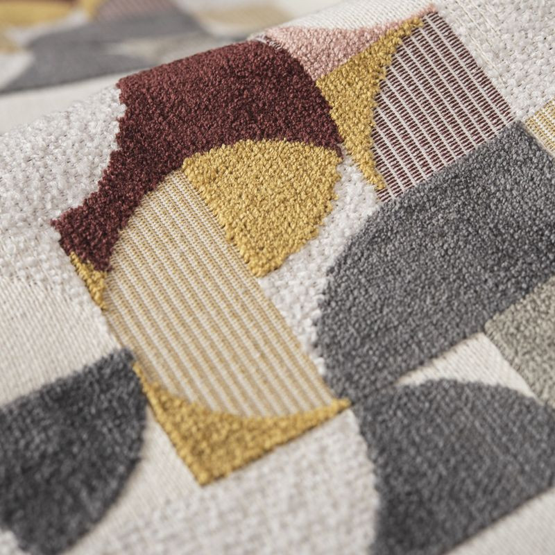 Elvis, Retro, geometrisk damaskvevd fløyelsstoff i vinrødt/sennep