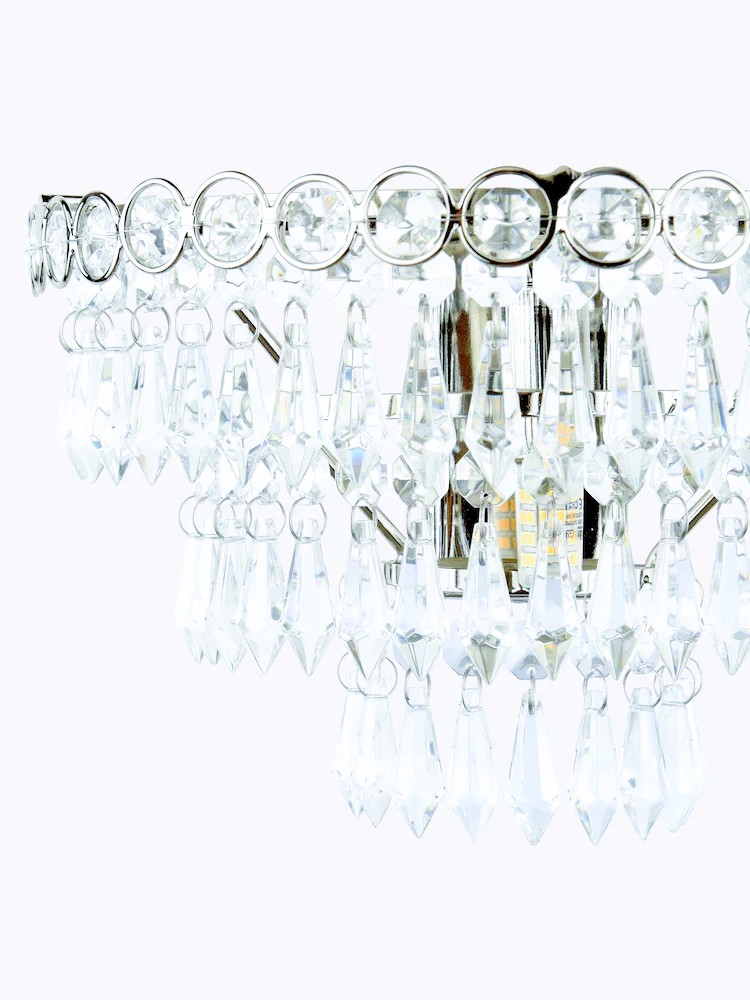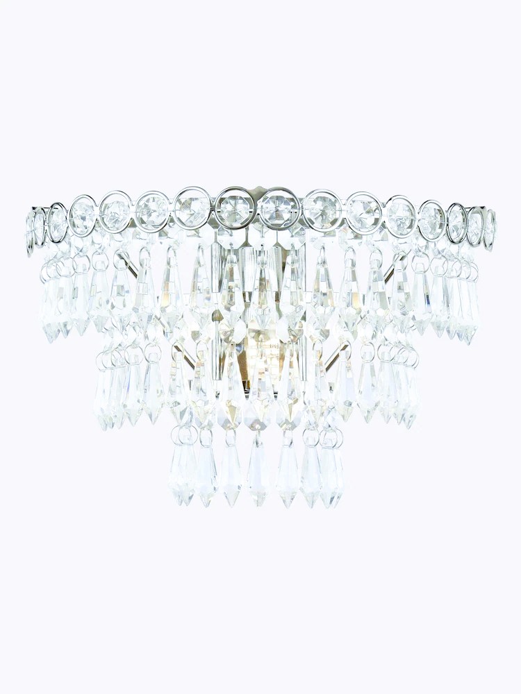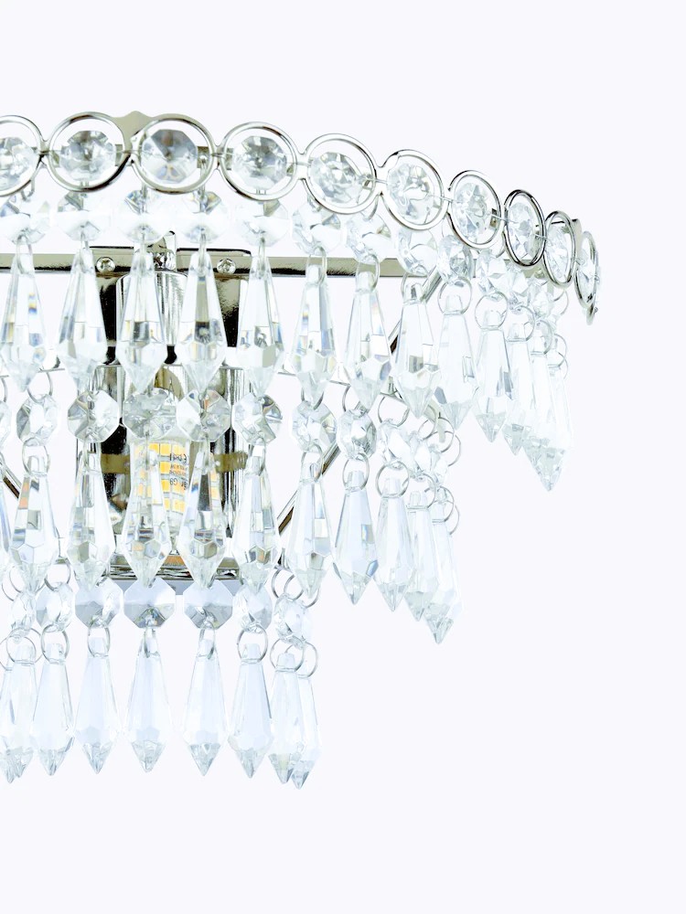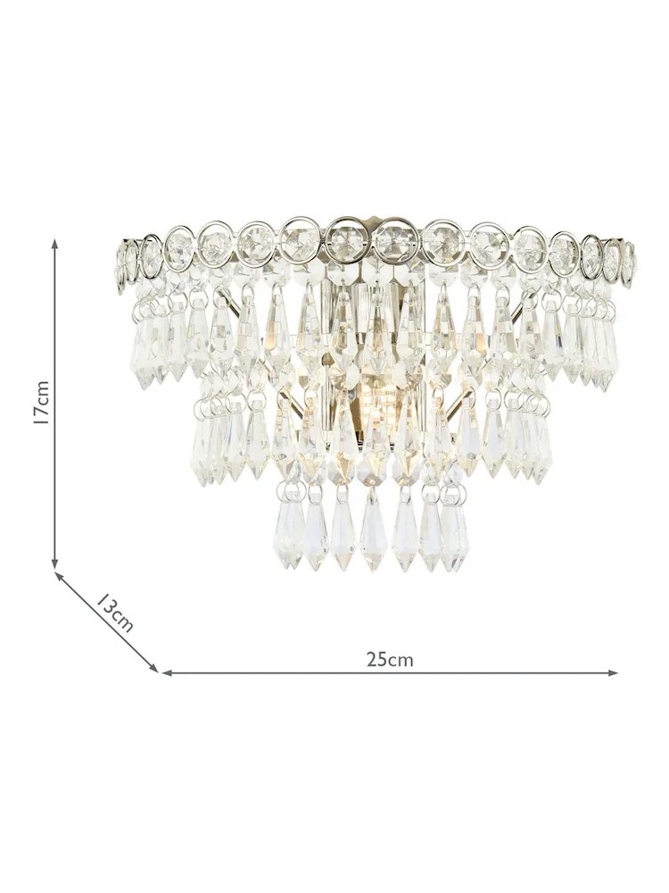 Enid, klassisk vegglampe i krom, med glasskrystaller