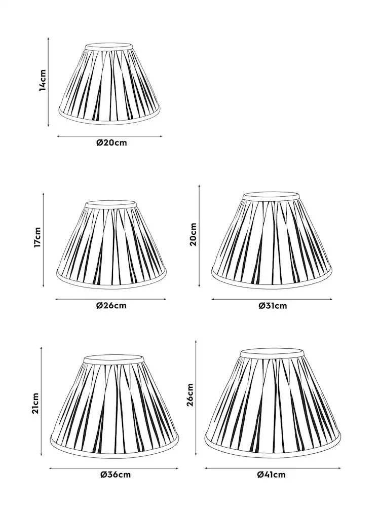 Fenn, klassisk lampeskjerm i plissert silke fra Laura Ashley. Fenn kommer i flere størrelser, og er en tidløs lampeskjerm som gir et elegant og vakkert uttrykk til lampe og hjem.