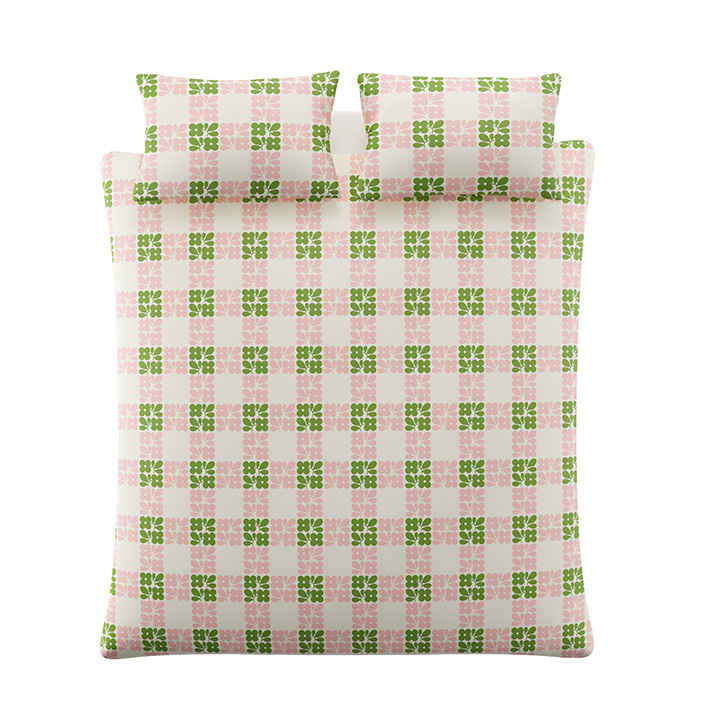 Floret Check, retro sengesett med blomstrete ruter i grønt og rosa fra Orla Kiely