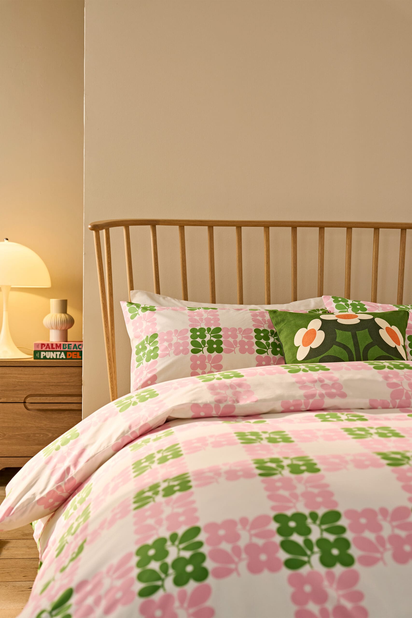 Bring the outside in with this uplifting and colourful check design from Orla Kiely. Featuring sprigs of Orla Kiely’s iconic four petal flower in a joyful palette of bright pink and green, this design is perfect for adding a contemporary and fashionable touch to your bedroom.
