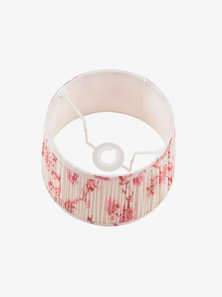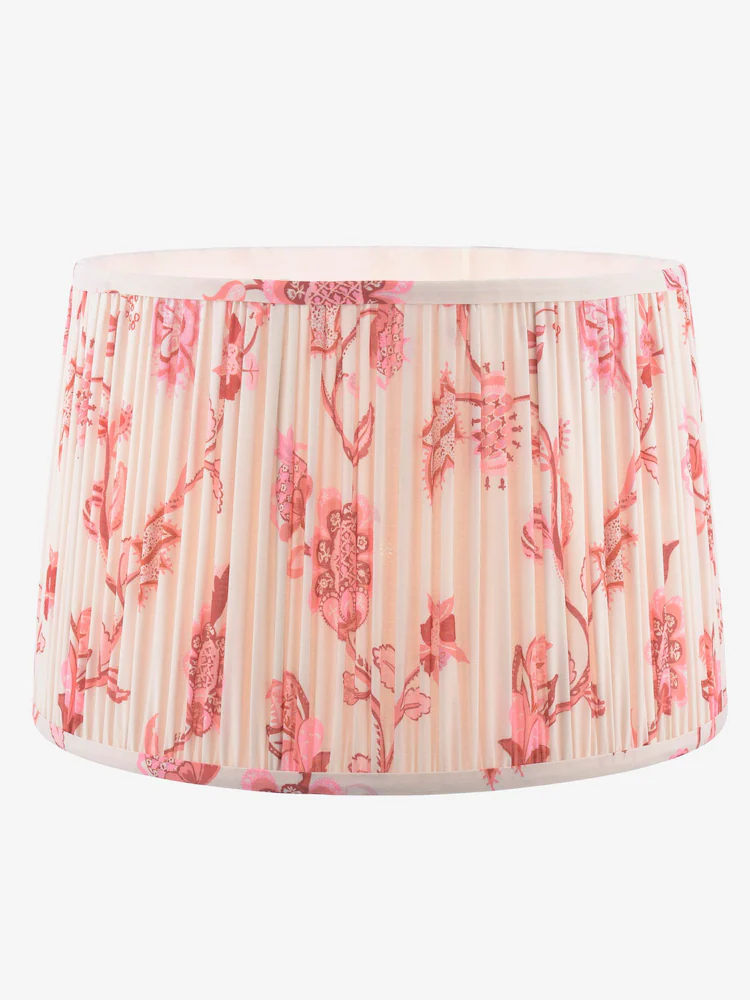 Folly, plissert lampeskjerm i mønstret bomull i rosa og krem fra Joules