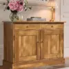 Garrat, en liten og elegant honninfgarget skjenk i bjørk. En klassisk skjenk med 2 dører og skuffer som vil være et dekorativt og praktisk møbel.