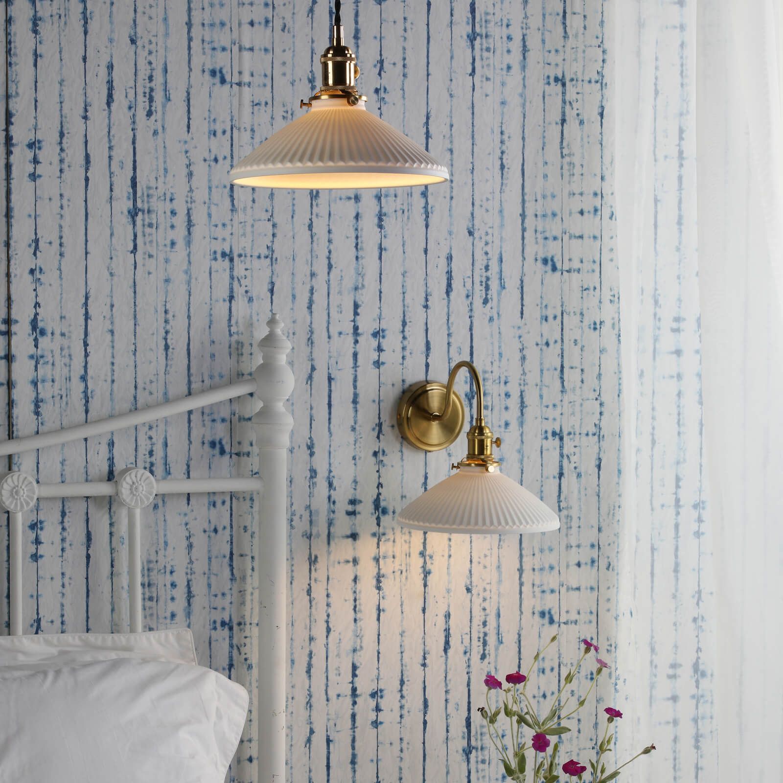 The Hadano Single Pendant Natural Brass & Ceramic Domed Shade is inspired by vintage lamp holders with its natural brass and ribbed ceramic construction. The translucent white shade diffuses the light from a single bulb for a cosy glow.