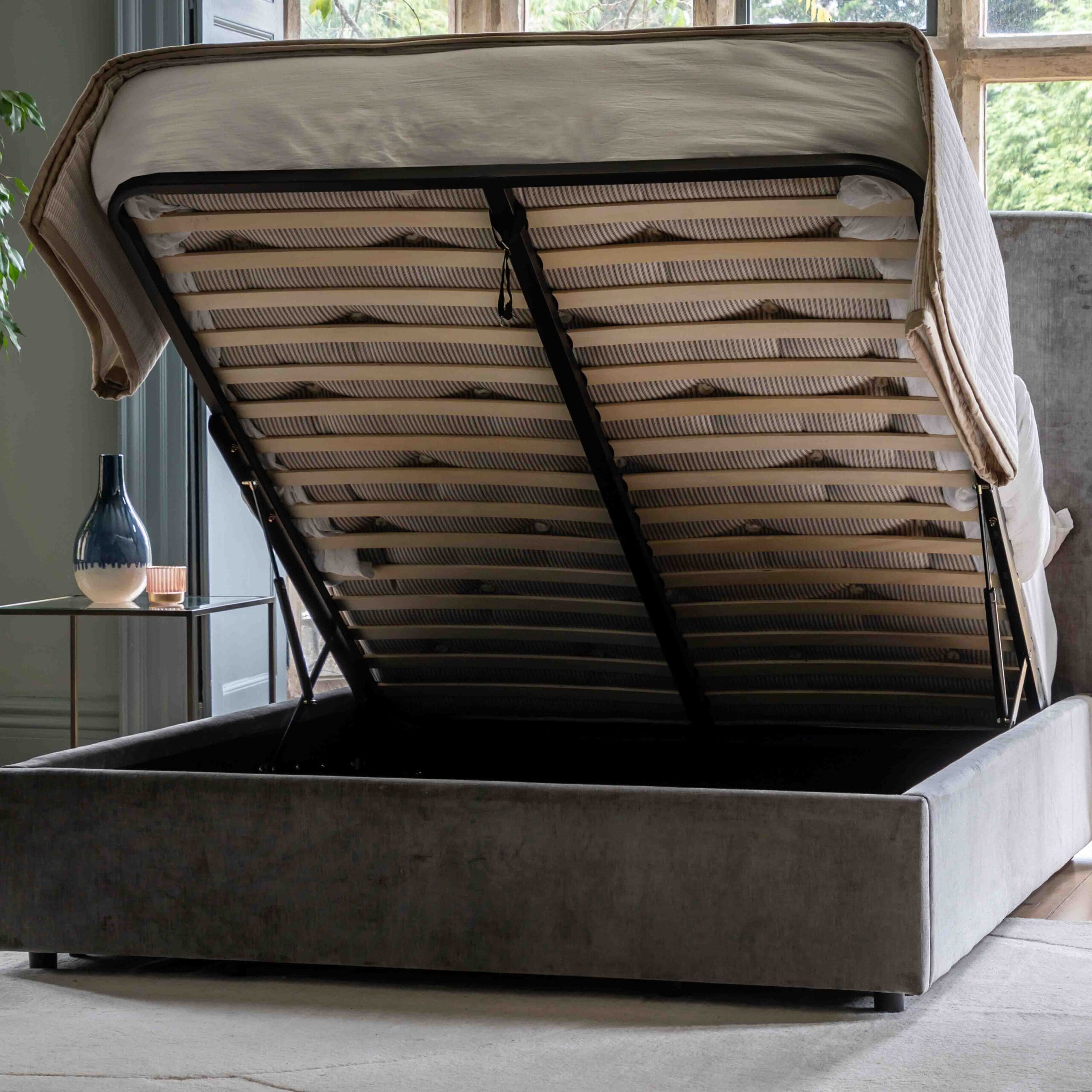 A fusion of modern design and practicality, this bedstead will add style, comfort and much needed storage space to a bedroom. The uniquely angled headboard wraps around the sides, framing your mattress for a sleek, enclosed look.