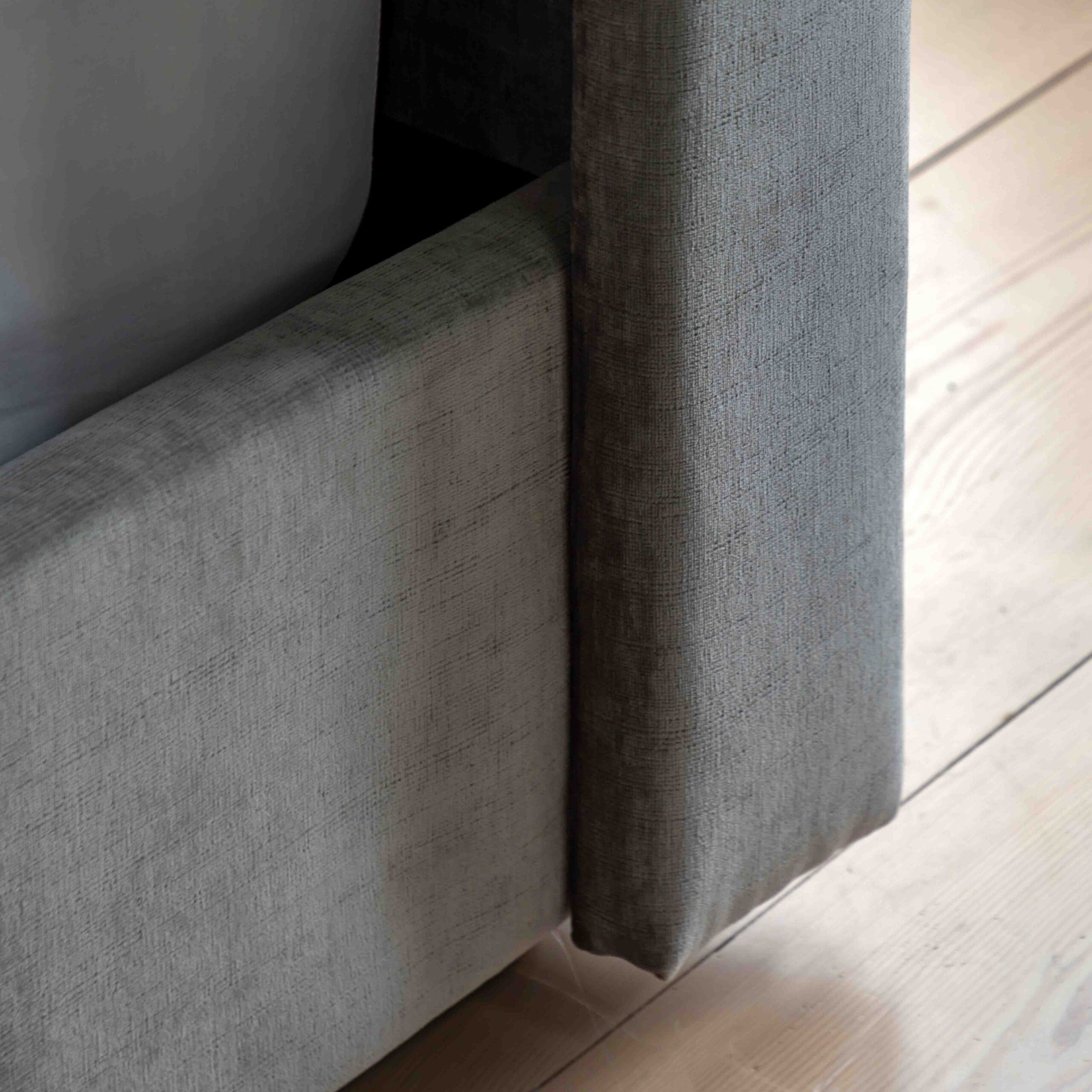 Moderne eleganse møter luksuriøs komfort I Halstead stofftrukne sengeramme. Denne sengen er en blanding av moderne design og praktisk bruk, og vil tilføre stil, komfort og tiltrengt oppbevaringsplass til soverommet. Den unikt vinklede hodegavlen omslutter sidene og rammer inn madrassen din for et elegant og luksuriøst utseende.