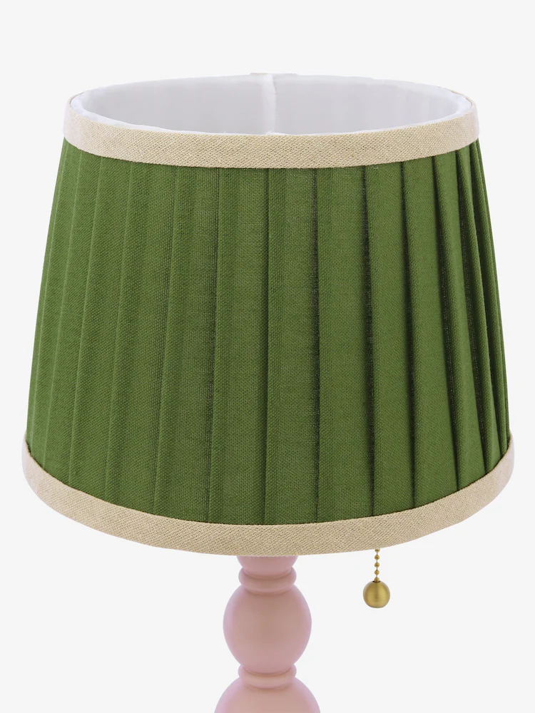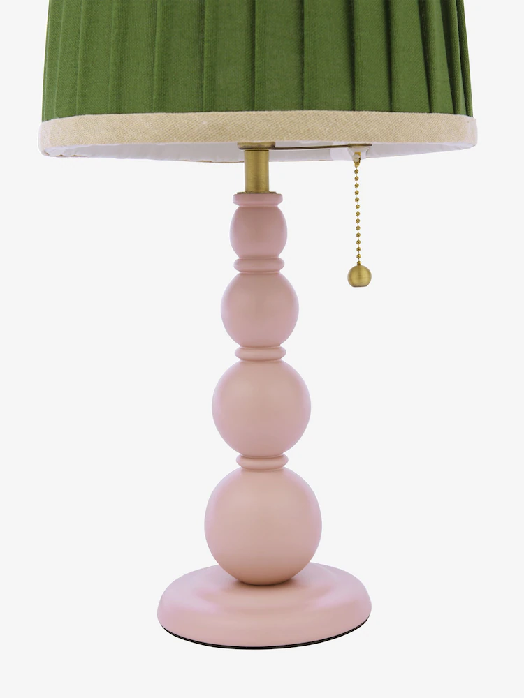 Harewood, bordlampe med dreid trefot i rosa og grønn skjerm fra Joules