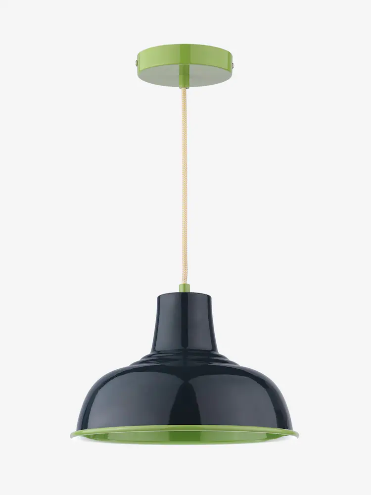 Hatfield, industriell pendellampe i blått og grønt metall fra Joules