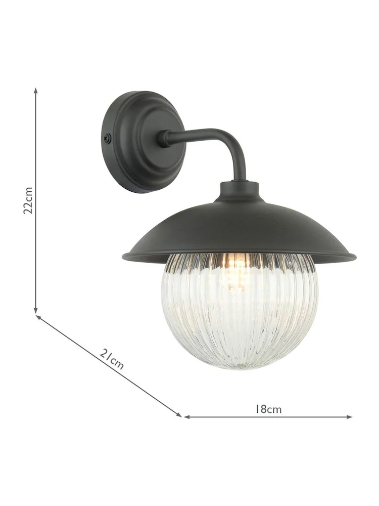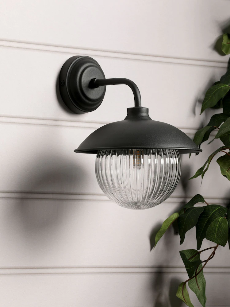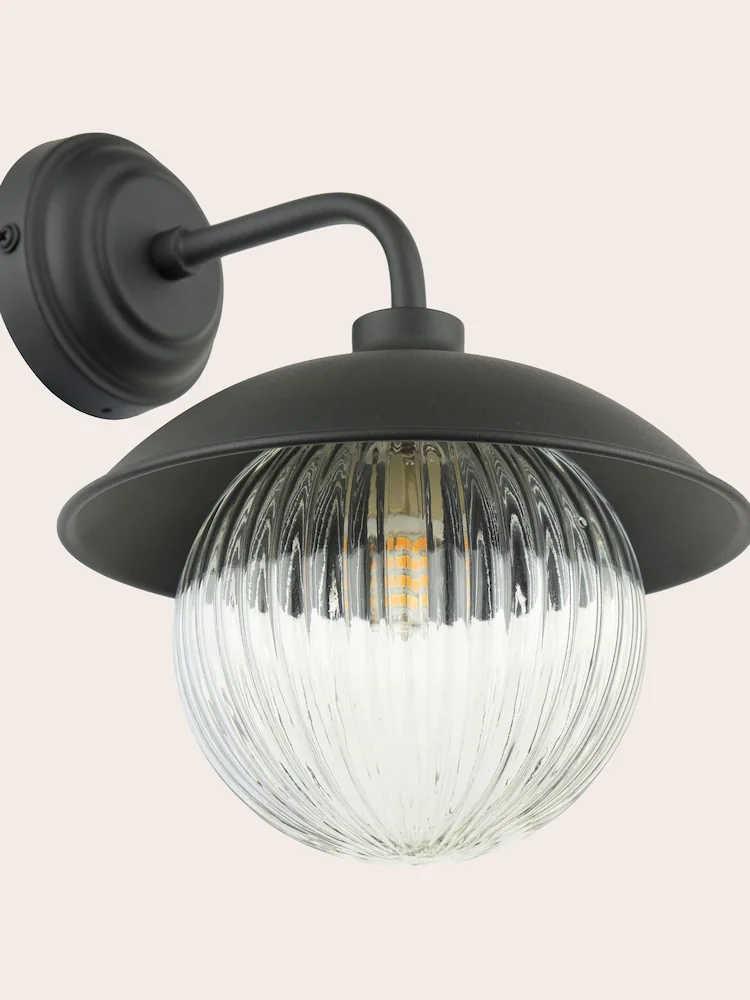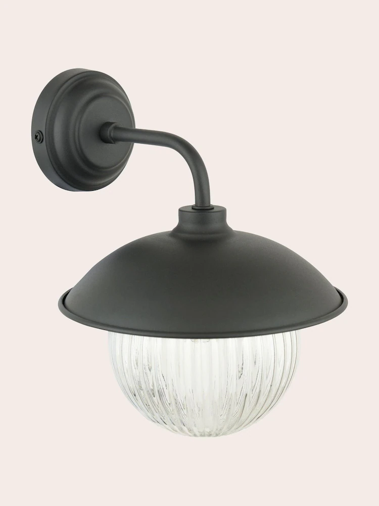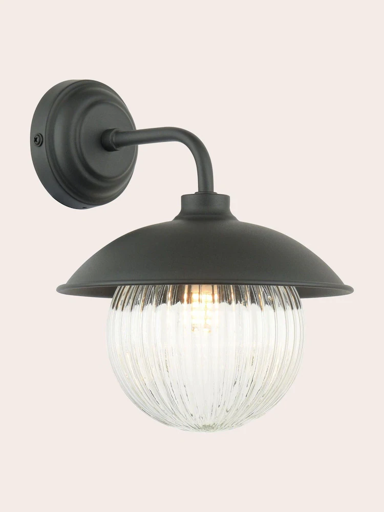 Hatton, en elegant og tidløs vegglampe med kuppel i glass fra Laura Ashley. Den ribbede formen og designet på kuppelen, gir Hatton tidløse kvaliteter. Denne har IP44 og kan benyttes både utendørs og på baderommet.