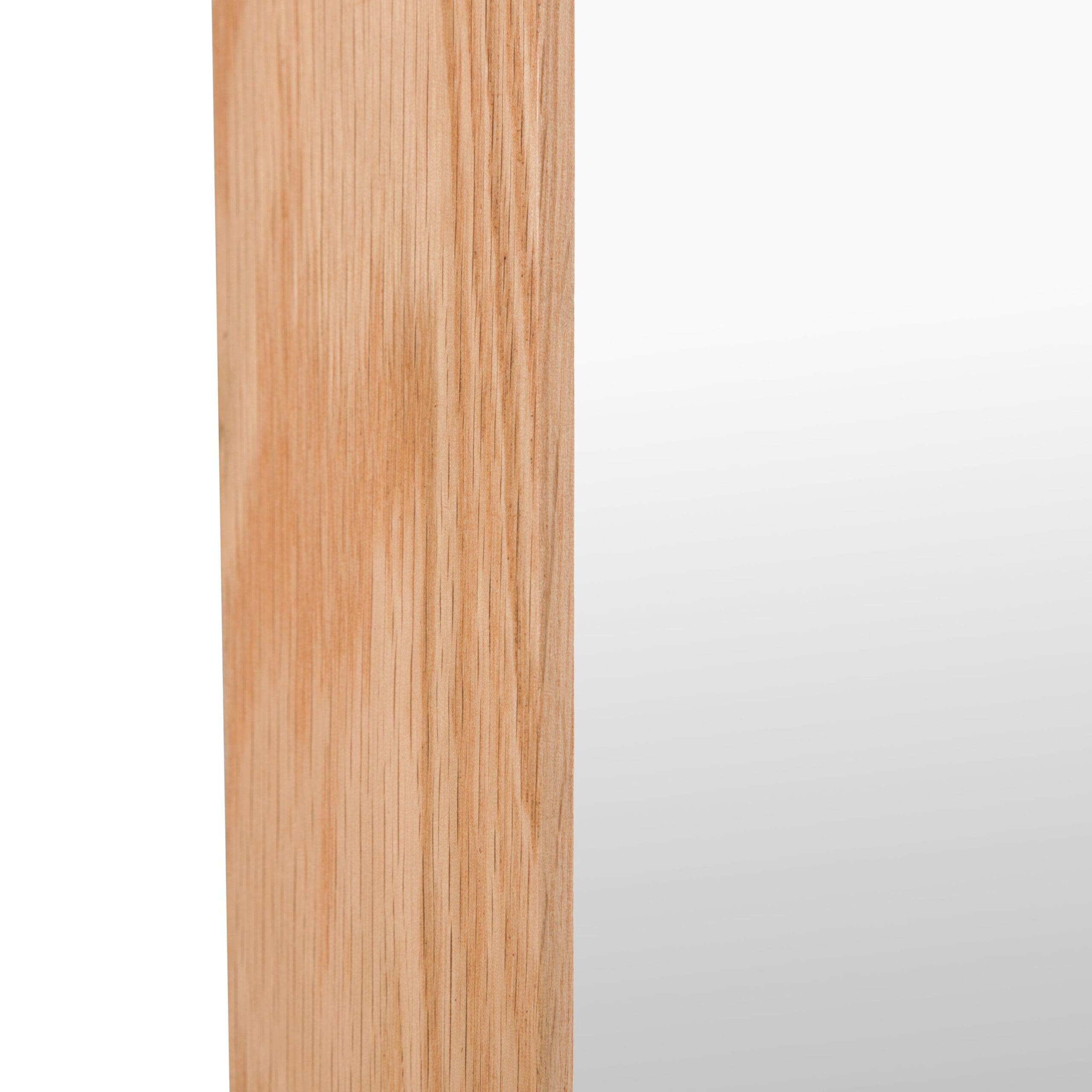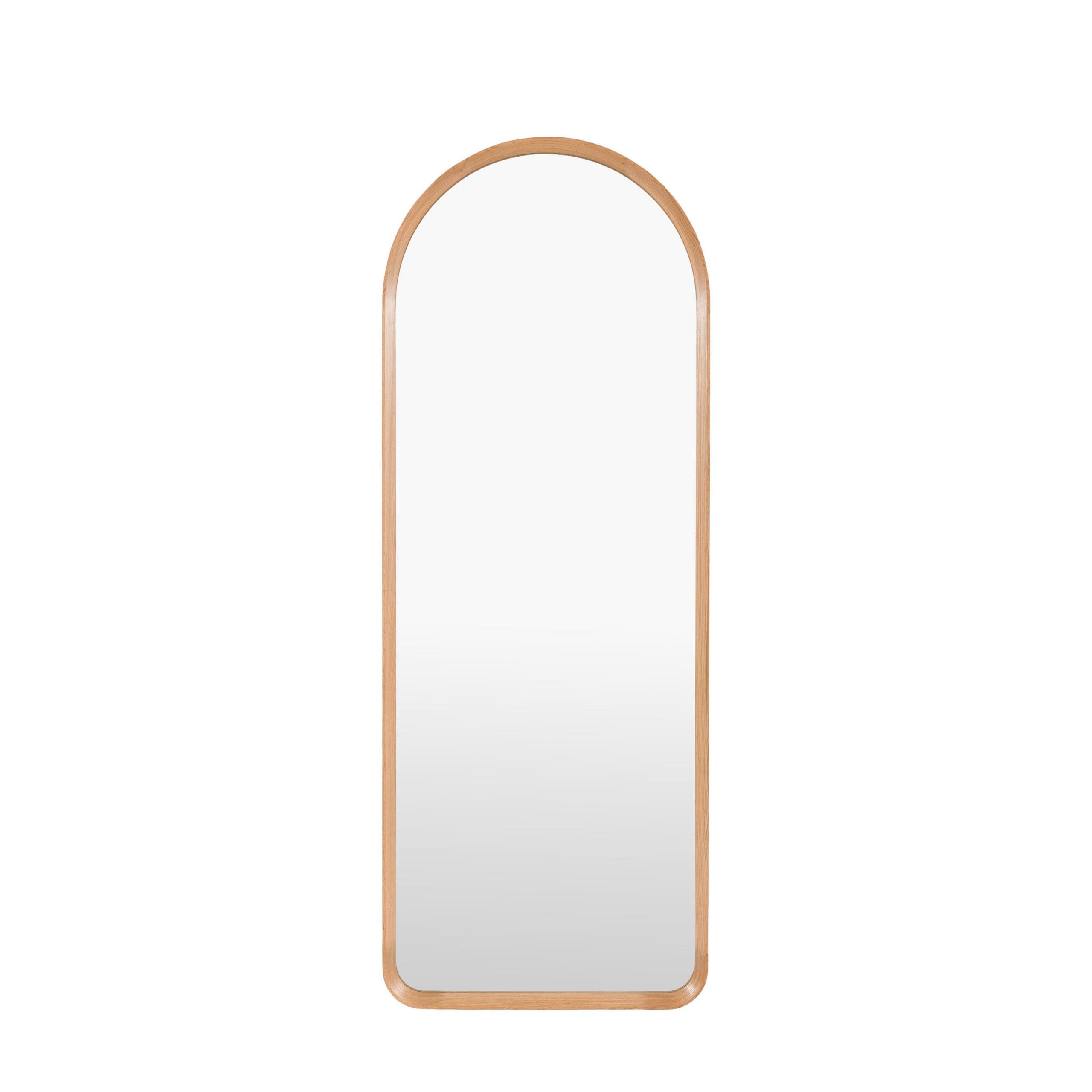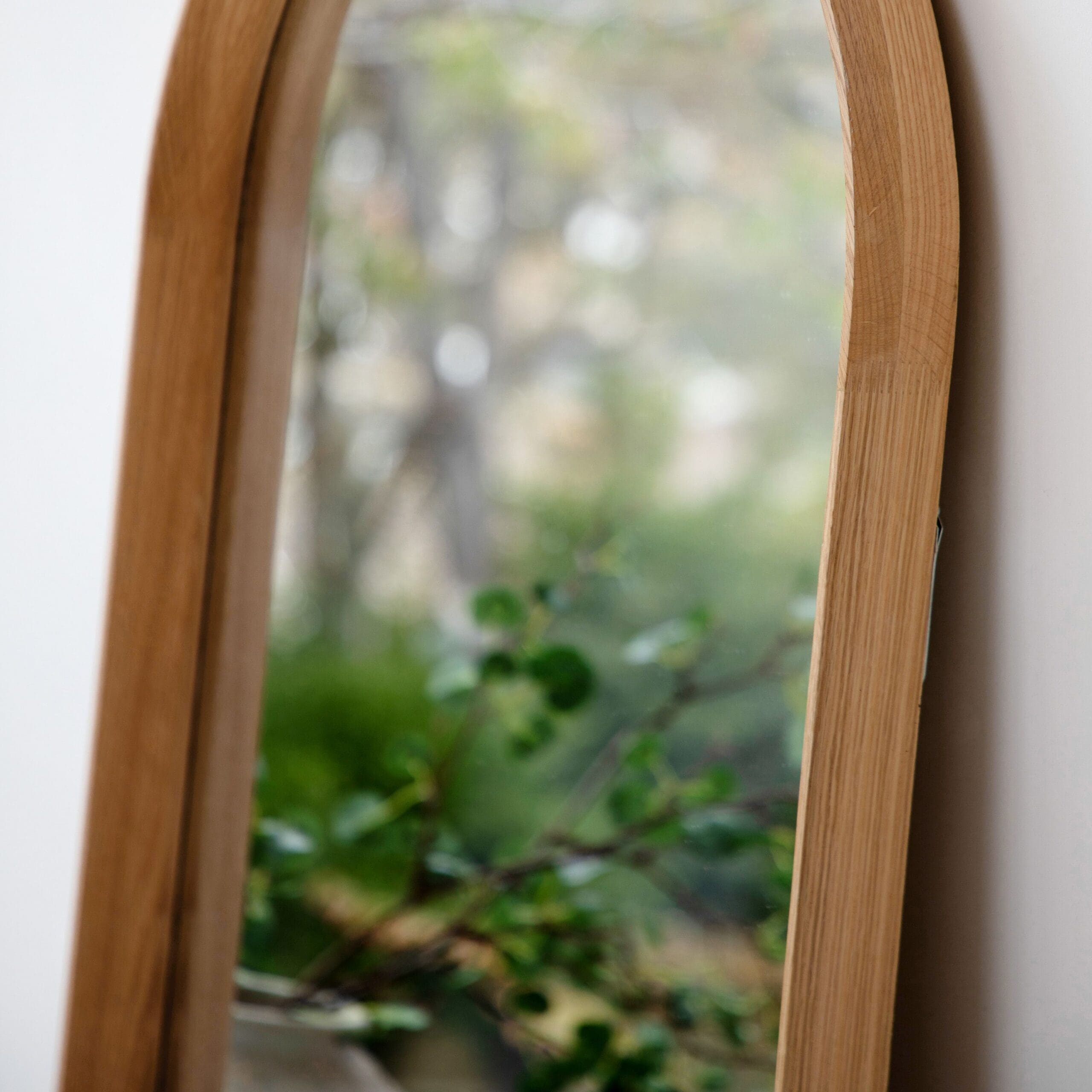 Dette skandinavisk-inspirerte buede gulvspeilet er moderne, enkelt og raffinert. Designet for å gi diskré eleganse og en frisk følelse til moderne interiør. Speilet er laget av heltre eik som fremhever den vakre naturlige årringene.