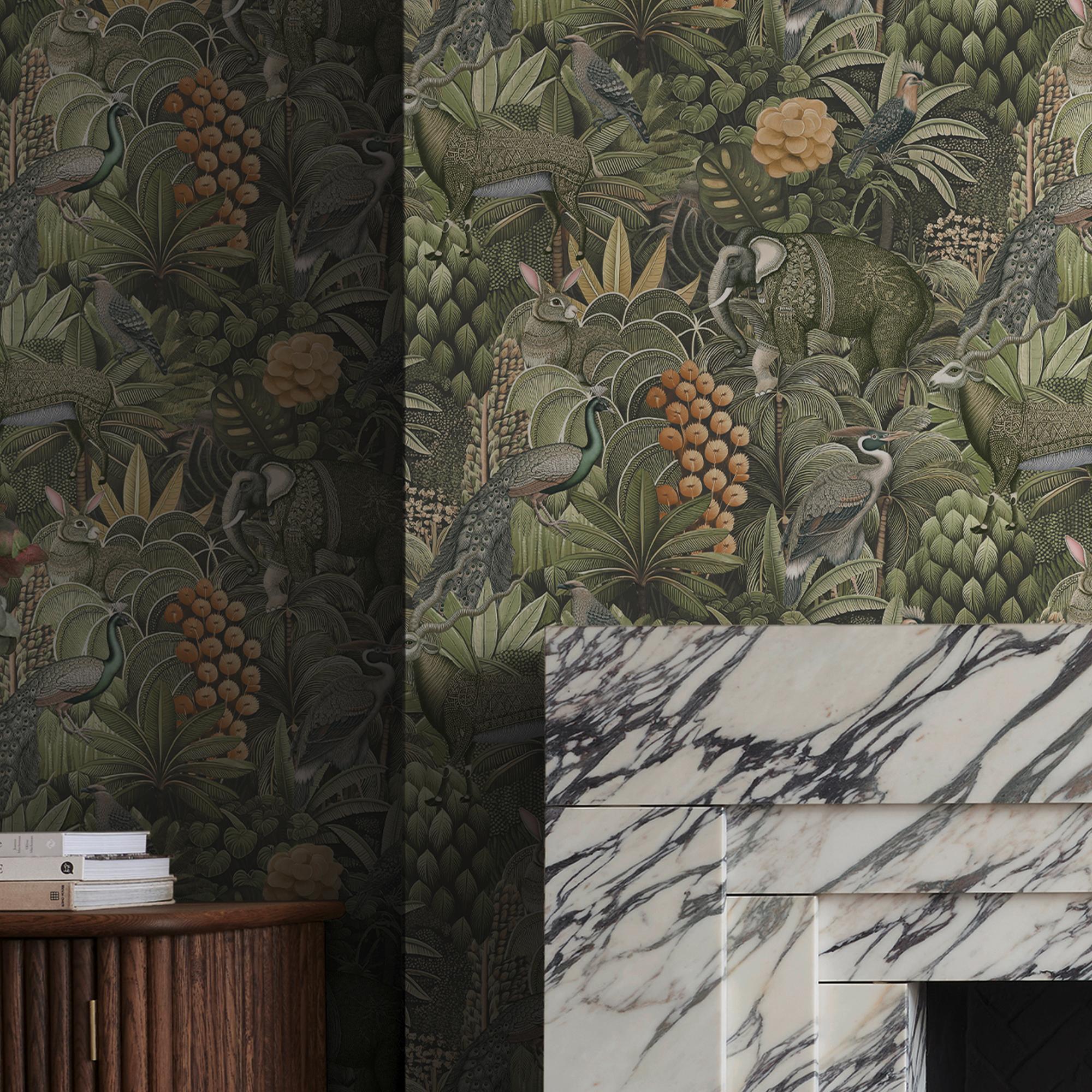 Jungle Jamboree, dyrisk tapet i dust grønt
