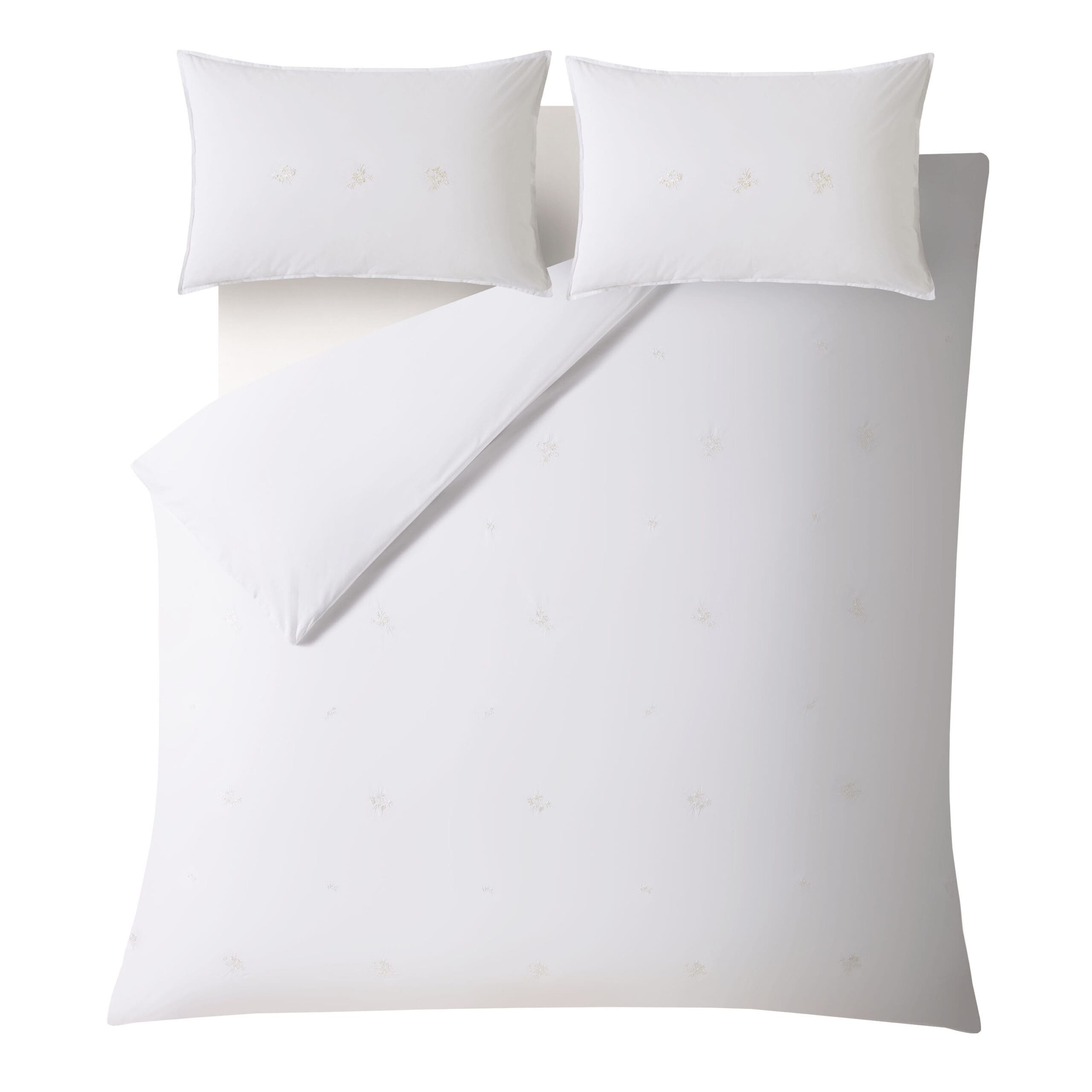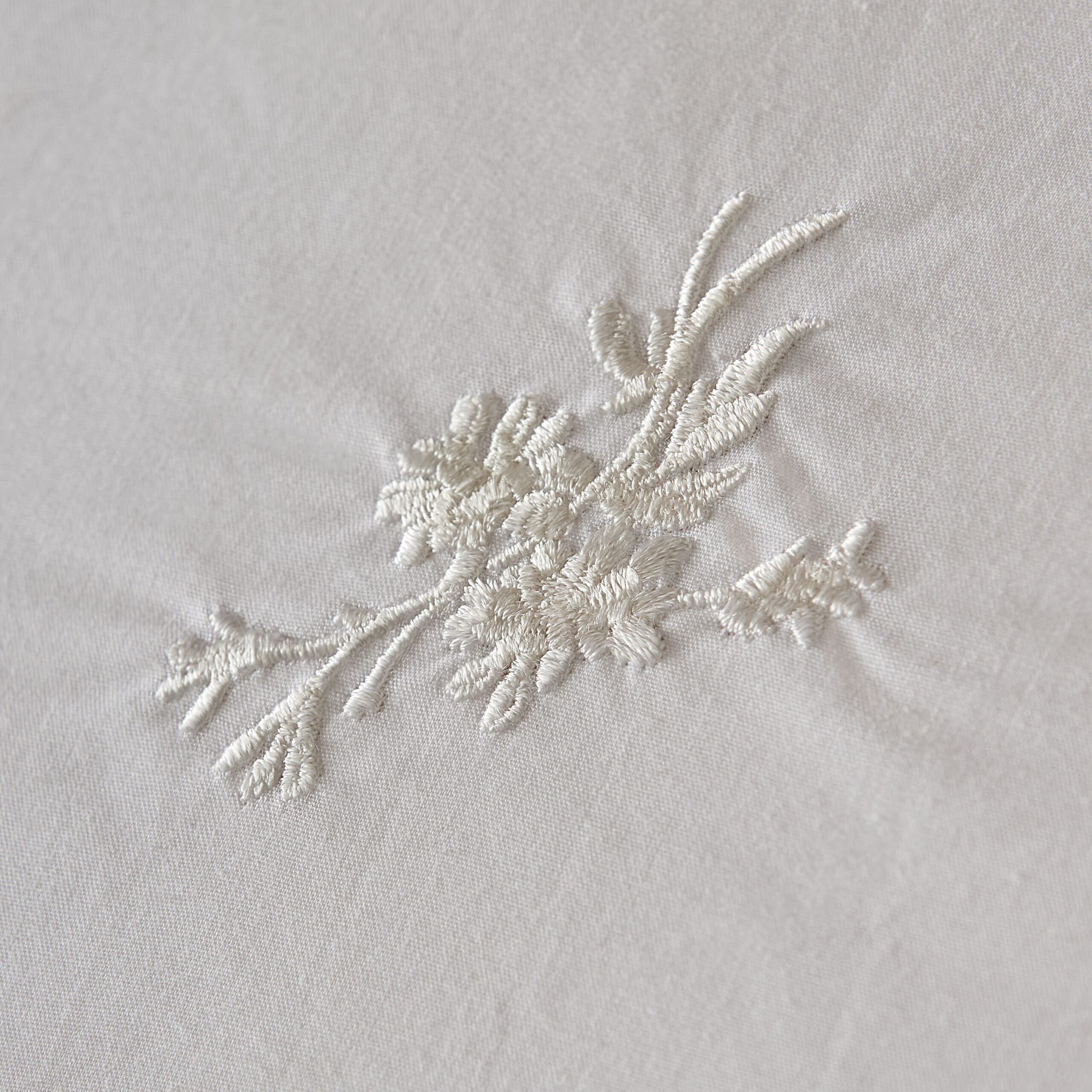 Subtle and romantic, the Keeleigh Posy embroidered bed set is a cottagecore-inspired design, featuring delicate sprays of stylised blooms and leaves. Embroidered in an elegant off-white shade onto a 200TC, cotton base and complete with a delicate mock oxford edge.