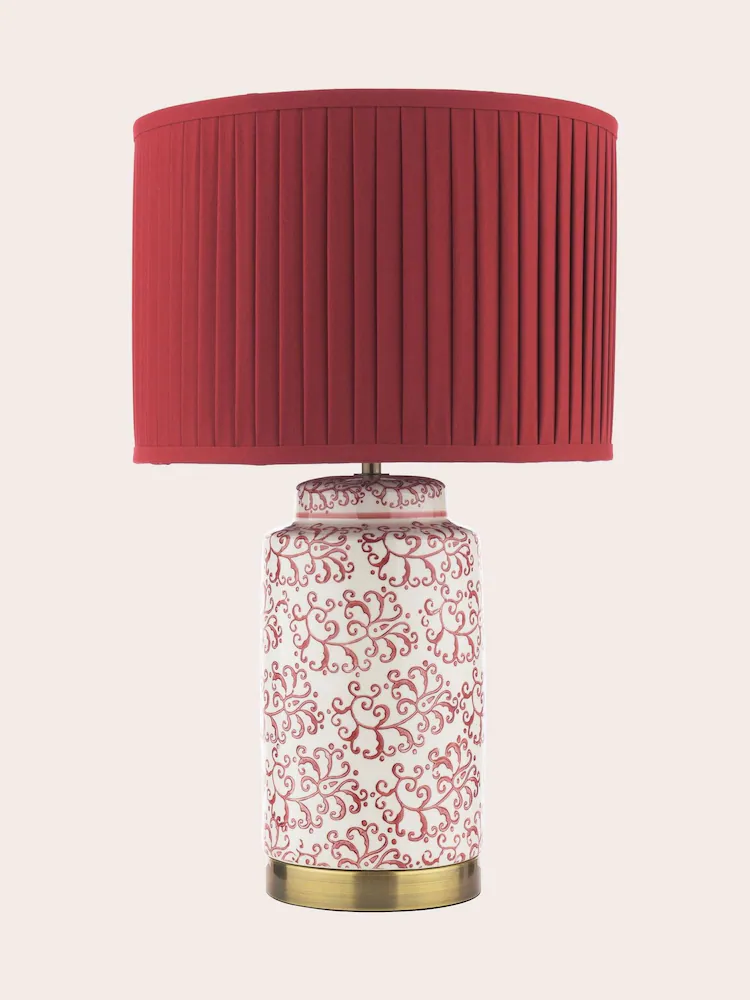 Add a touch of colour to your living room or bedroom with the striking Laura Ashley Knipton Table Lamp. Its generous scale and vibrant, patterned base make this lamp a true style statement. Featuring a pleated shade in deep red, this large lamp showcases a gorgeous printed base that creates a focal point in your home, grounding your space in effortless sophistication.