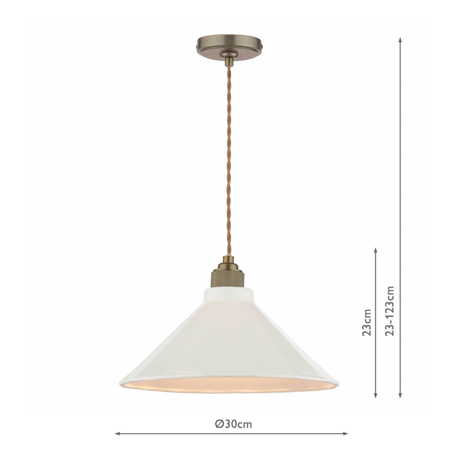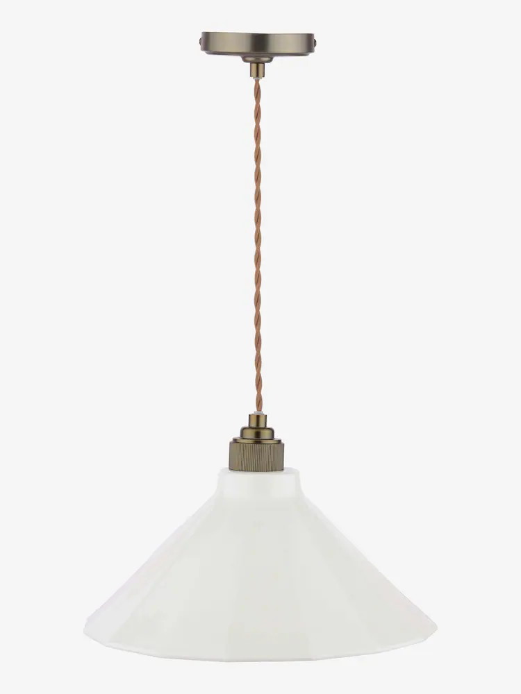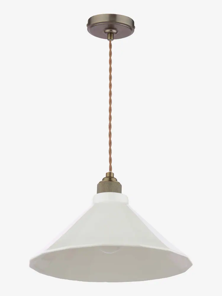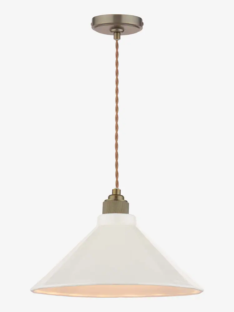 Lynton, stor pendellampe i antikk bronse med kremfarget porselensskjerm fra Joules
