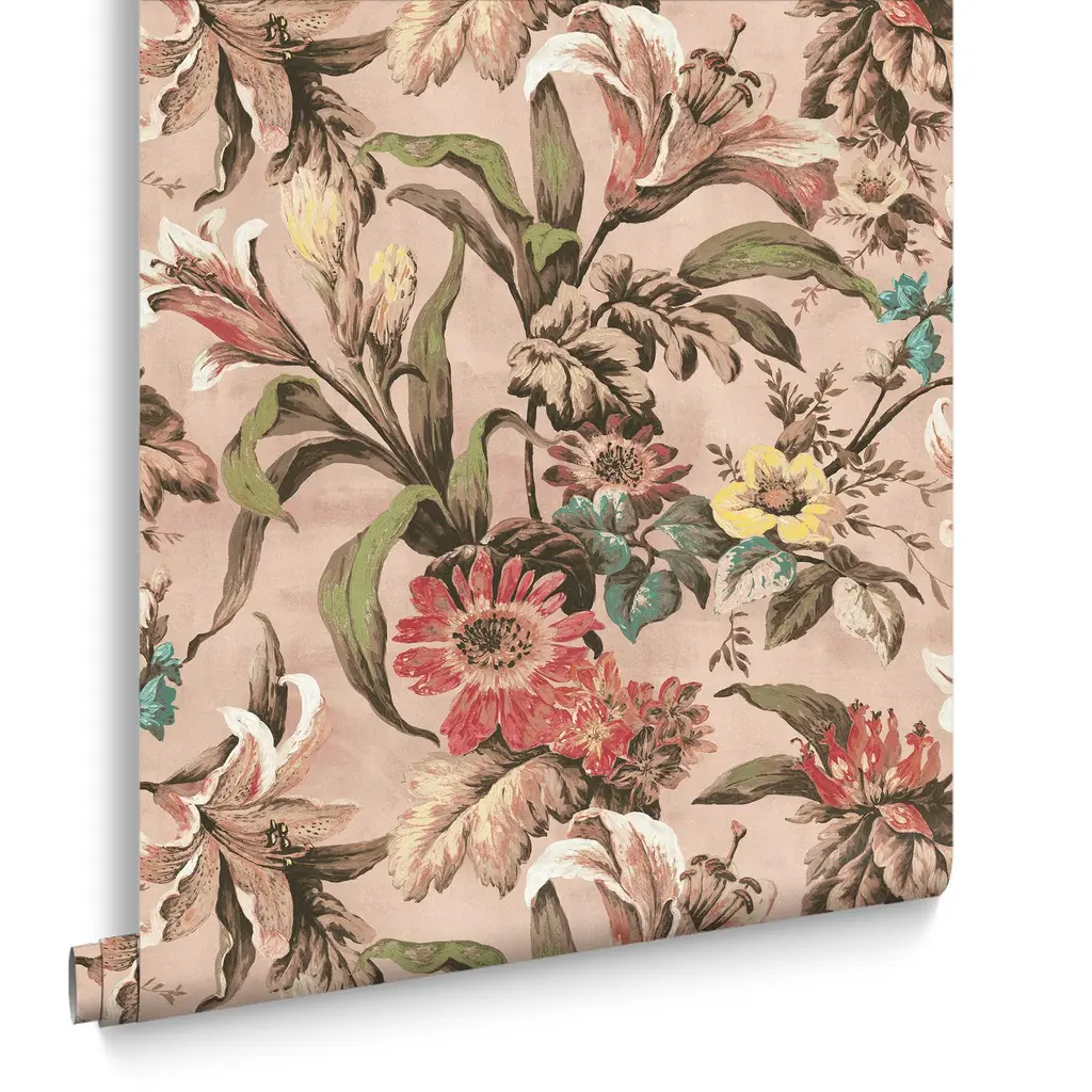 Forvandle rommet ditt med den tidløse skjønnheten til Lys Whispering Rose tapet. Håndmalte liljer og livlige blomster, kombinerer dette tapetet naturens eleganse med kunstnerisk raffinement.