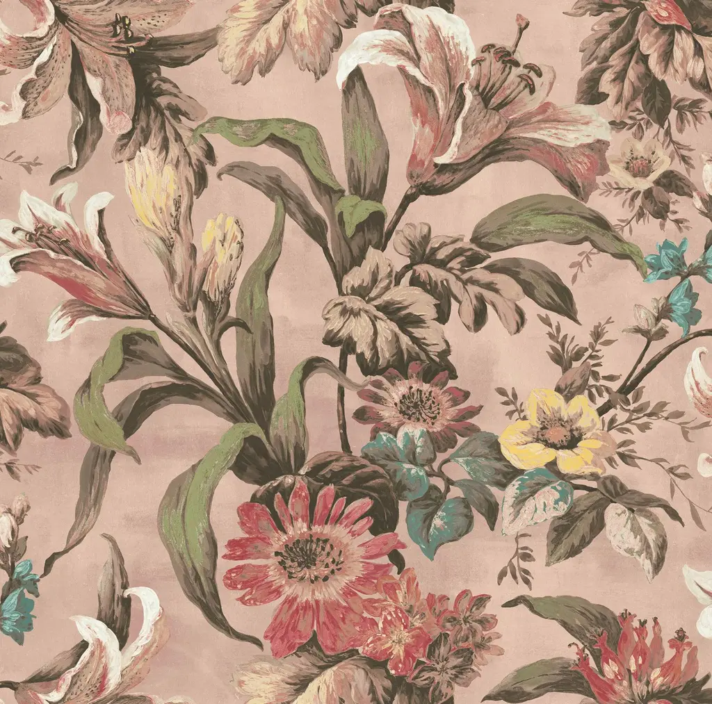 Lys Whispering Rose, storblomstrete tapet med liljer i rosa