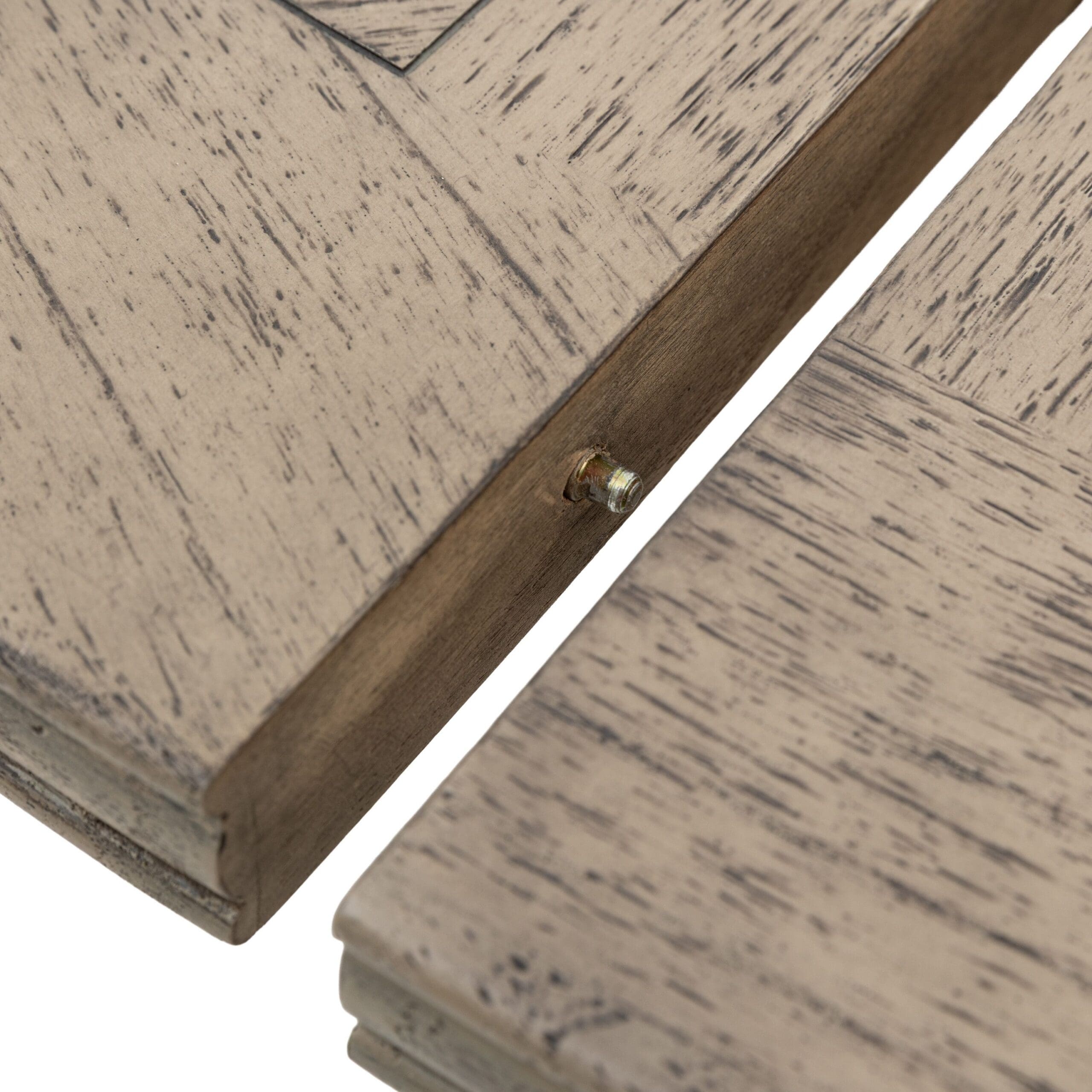Med sitt vakre innlagte parkettdesign og elegante dreide ben, utstråler dette runde spisebordet uanstrengt stil og appell. Laget av Mindy-tre som er lett børstet for å gjenskape en naturlig aldringseffekt. Den subtile finishen og det stilige designet passer til en rekke interiører.