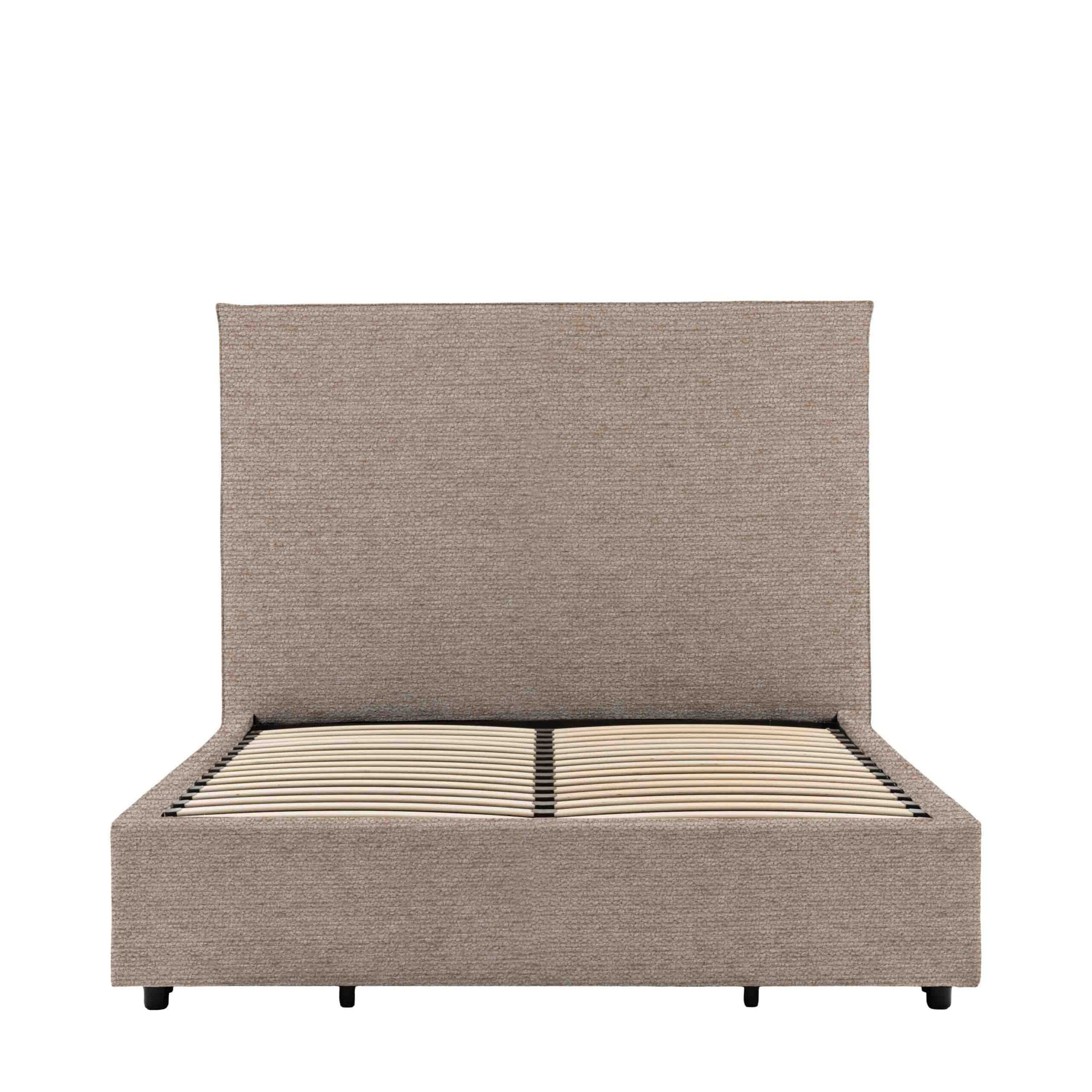 Naunton, Minimalistisk trukket sengeramme med hodegavl i boucle (MTO 6 fargevalg) (150cm)