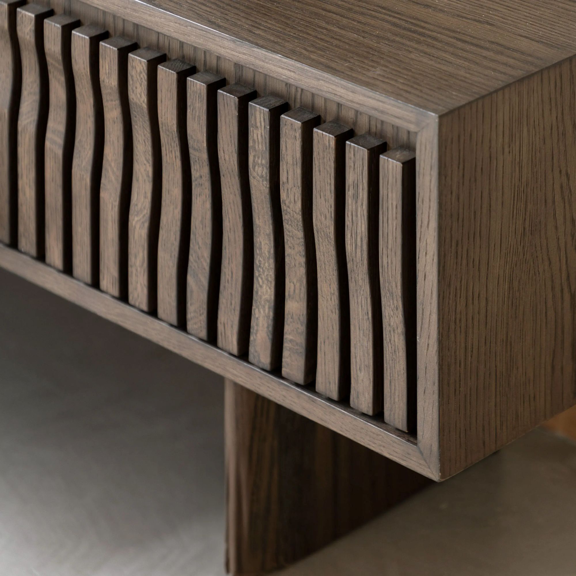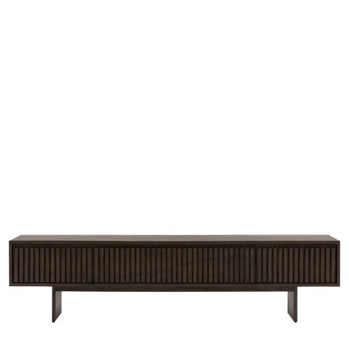 Effortlessly stylish thanks to its modern Italian influences, this media unit will enhance any living space. The rich, charcoal brown finished oak solids & veneers show off the clean lines and slatted wave design on the cupboard doors. With plenty of storage for all your electronics, the media unit blends functional practicality and modern style.