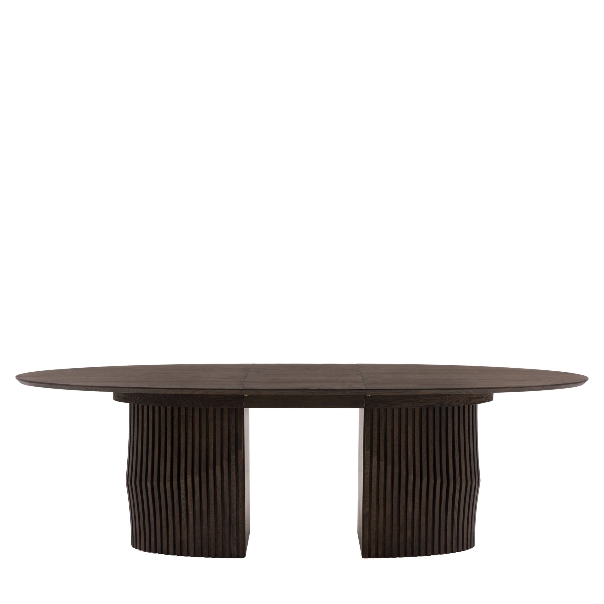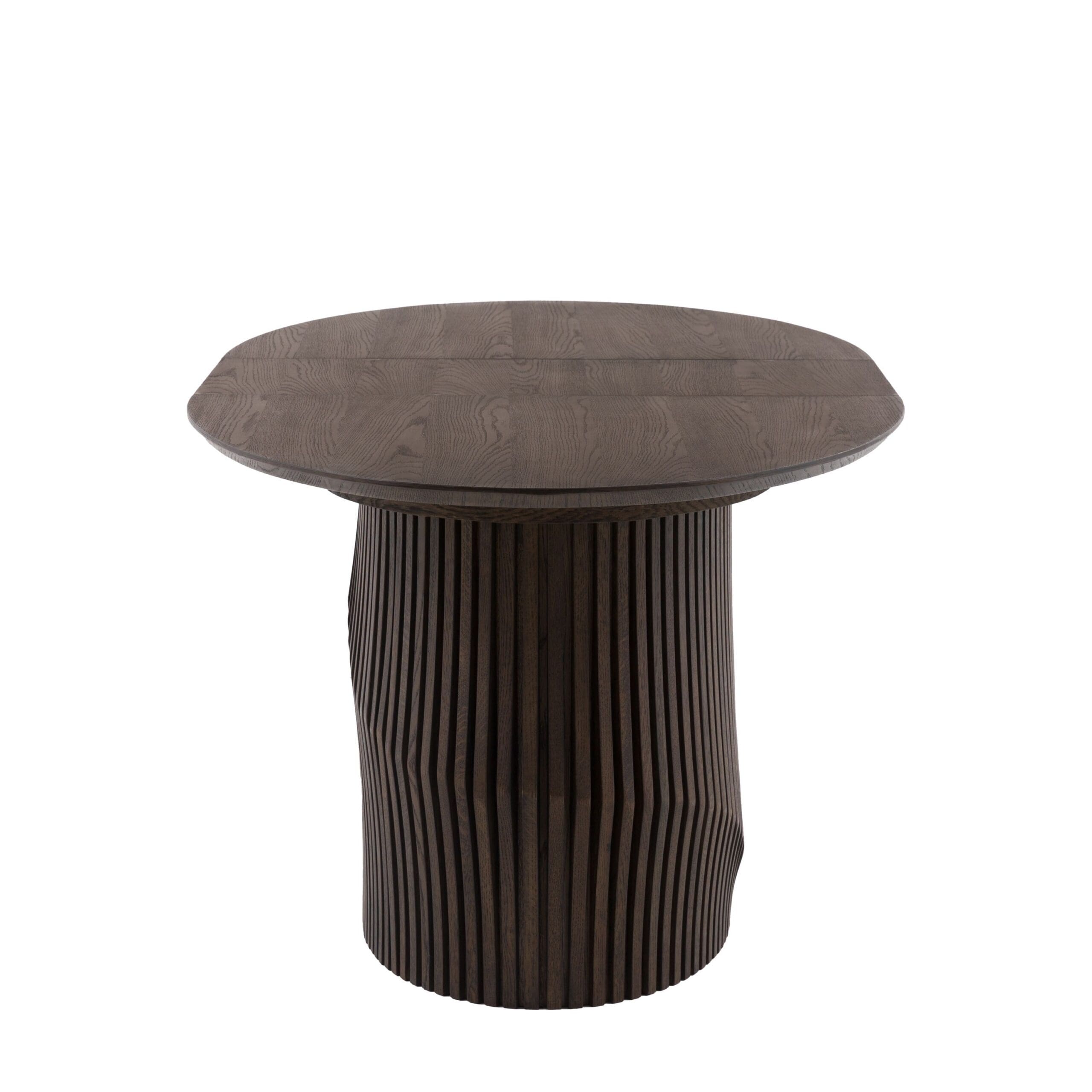 Onda, ovalt skulpturelt spisebord med uttrekk i kullbrun eik