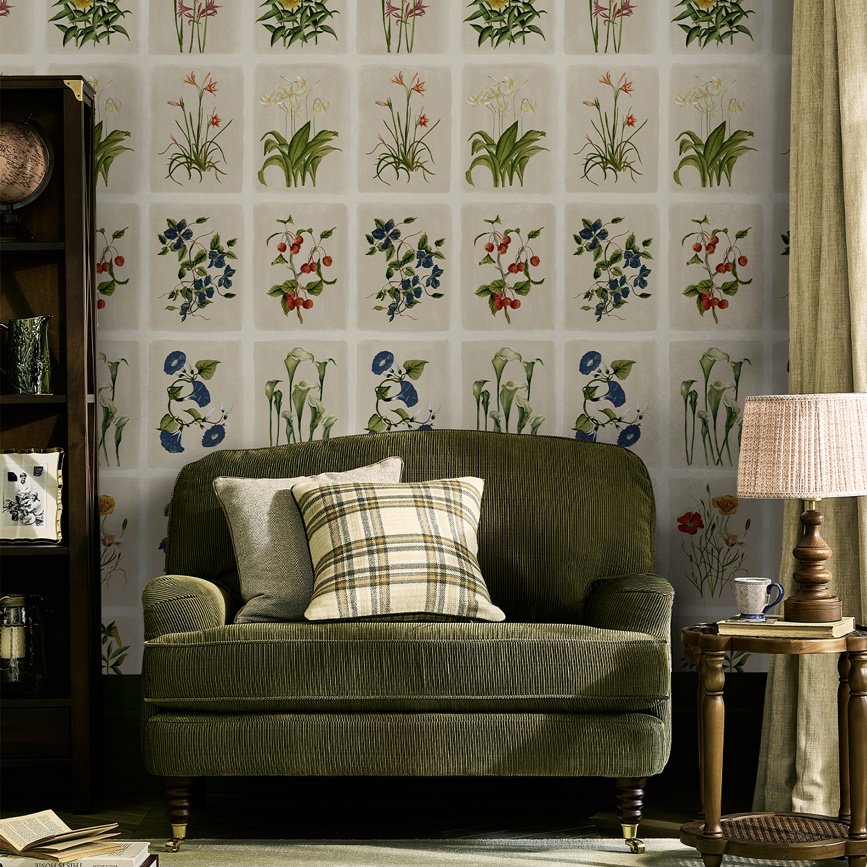 Tapeten, Pershore Postcards henter inspirasjon fra botaniske illustrasjoner som finnes i antikke blomsterbøker. Med et rutenett av vakre blomstermotiver, har hver vignett delikat penselføring og livlige farger. Mønsteret gir et tidløst, men moderne preg, du lage ditt eget uttrykk på veggen.